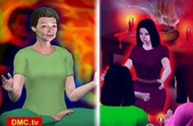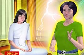 นี่ก็เป็นเทคนิคในการสอนสมาธิ ของวัดพระธรรมกาย อีกอย่างหนึ่งการที่ให้คำแนะนำไป ขณะที่เขาหลับตาทำสมาธิ เสียงของผู้ที่สอน หรือของพระอาจารย์ เป็นเสียงที่อยู่ในสมาธิ มีอำนาจ มีพลังที่จะโน้มนำให้ลูกศิษย์ที่ฝึกใหม่ สามารถยกใจให้เข้าสู่ความสงบได้เร็ว วัดพระธรรมกายจึงมีการนำนั่งสมาธิ ด้วยการให้พระอาจารย์พูดนำเป็นช่วงๆ อย่างพอเหมาะพอสม นี่คือเทคนิคของเรา