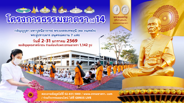 ศูนย์ปฏิบัติธรรมพระมงคลเทพมุนี จัดพิธีตักบาตรฉลองพระใหม่ และสัมมนา กตัญญูล้นใจ 10,000 คน ต้อนรับพระธรรมยาตรา