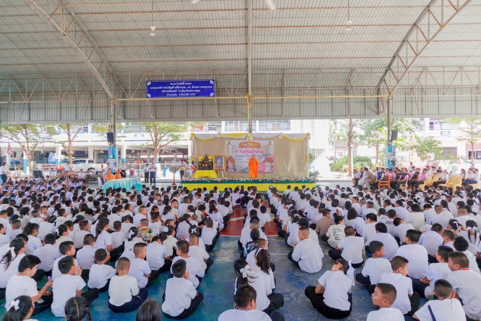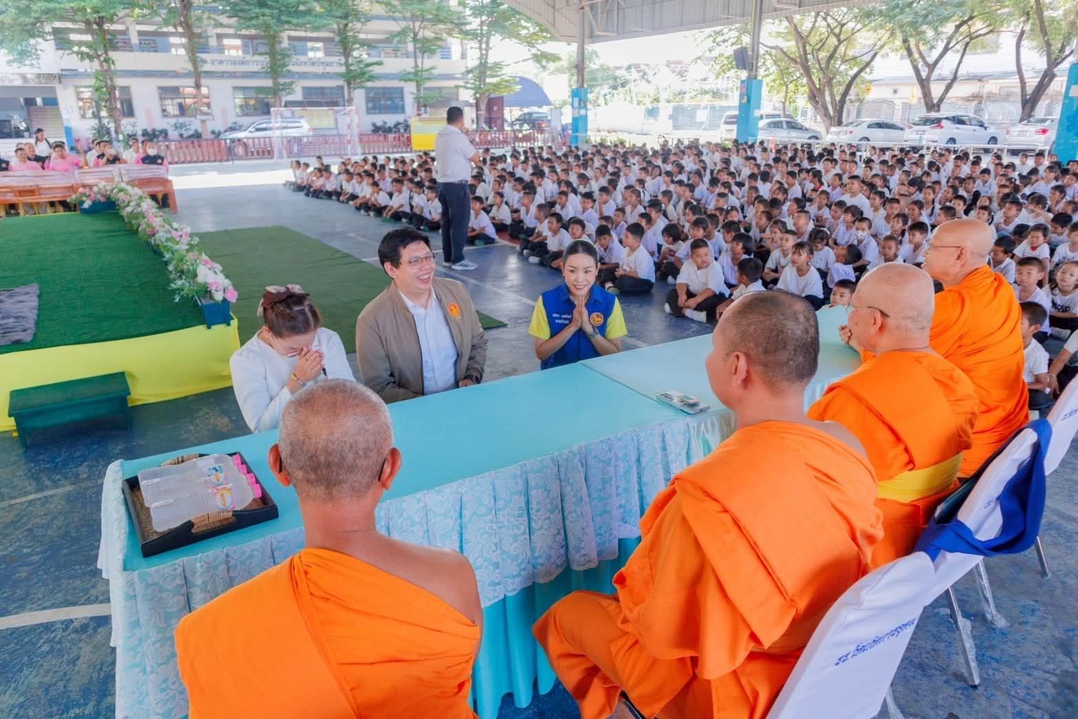 ผู้ช่วยเจ้าอาวาสวัดพระธรรมกาย ใหัโอวาทเปิดค่ายคุณธรรม “กิจวัตรพัฒนานิสัยบัณฑิตนักปราชญ์” สร้างสรรค์เด็กเก่ง ดี มีศีลธรรม โรงเรียนวัดเกิดการอุดม พร้อมมอบนมกล่อง-ขนม 850 ชุด ให้การสนับสนุนฯ