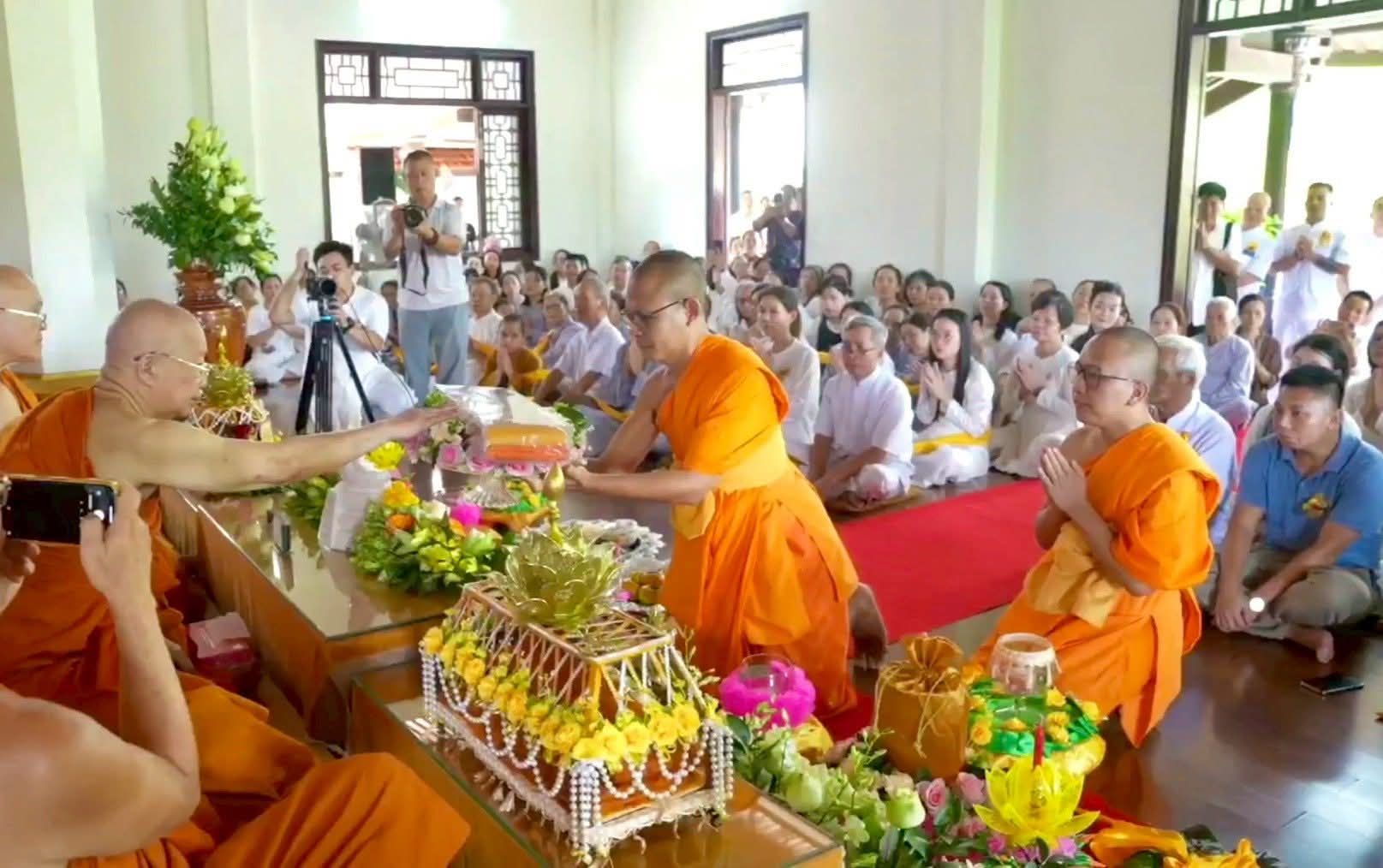 ผู้แทนวัดพระธรรมกาย ถวายปัจจัยสมทบกฐินกรรมการบริหารพุทธสมาคมนครเว้