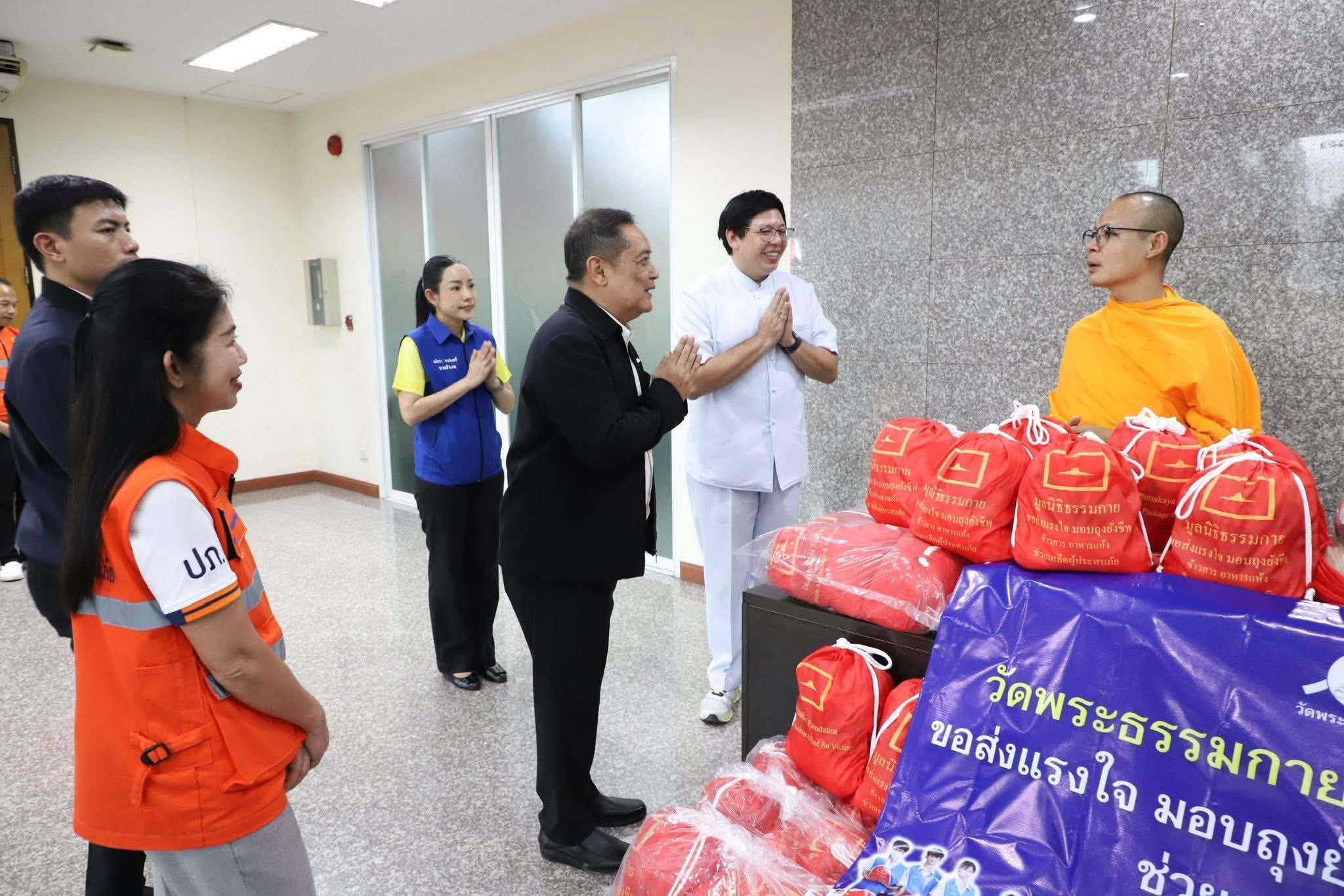 วันนี้ (๑๔ ตุลาคม พ.ศ.๒๕๖๘) เวลา ๑๓.๓๐ น. ณ ศาลารักษ์ปทุม ศาลากลางจังหวัดปทุมธานี นายเอกวิทย์ มีเพียร ผู้ว่าราชการจังหวัดปทุมธานี เป็นประธานรับมอบถุงยังชีพข้าวสารอาหารแห้งจำนวน ๓๐๐ ชุด จาก พระมหานพพร ปุญฺญชโย ป.ธ.๙ ผู้ช่วยเจ้าอาวาสวัดพระธรรมกาย ผู้แทนพระครูปลัดรัตนวีรวัฒน์ (รังสฤษดิ์ อิทฺธิจินฺตโก) เจ้าอาวาสวัดพระธรรมกาย และนายองอาจ ณฐ ธรรมนิทา ผู้แทนคณะศิษยานุศิษย์วัดพระธรรมกาย กรรมการฝ่ายสาธารณสงเคราะห์วัดพระธรรมกาย