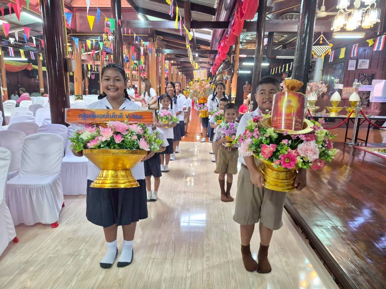 “กิจกรรมทอดกฐินสัมฤทธิ์เด็กดี V-Star ทางโรงเรียนเริ่มทำเป็นปีแรก โครงการนี้ได้นำนักเรียนทำกิจกรรมต่าง ๆ อย่างเป็นขั้นตอน ตั้งแต่การไปรับผ้าไตรที่วัด ต่อมาพานักเรียนไปกราบนมัสการหลวงพ่อเจ้าอาวาส เพื่อเตรียมความพร้อมในการจัดงาน ร่วมกันทำความสะอาดสถานที่ และไปบอกบุญกับชุมชน ซึ่งชาวบ้านในชุมชนให้ความร่วมมือเป็นอย่างดี