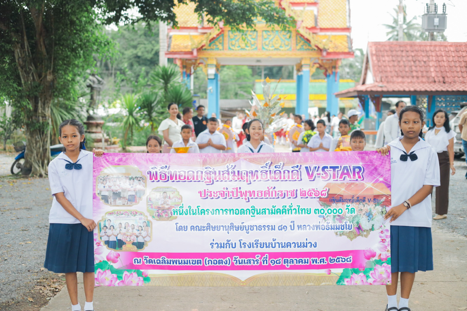 เมื่อวันที่ 18 ตุลาคมที่ผ่านมา โรงเรียนบ้านควนม่วง จังหวัดกระบี่ ได้จัดกิจกรรม ทอดกฐินสัมฤทธิ์เด็กดี V-Star ปีที่ 2 ซึ่งเป็นส่วนหนึ่งของโครงการ ทอดกฐินสามัคคีทั่วไทย 30,000 วัด ประจำปี พ.ศ. 2568 โดยคณะศิษยานุศิษย์บูชาธรรม 81 ปี หลวงพ่อธัมมชโย