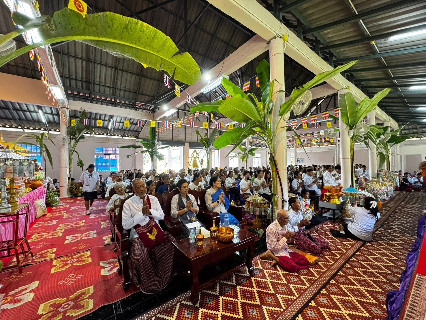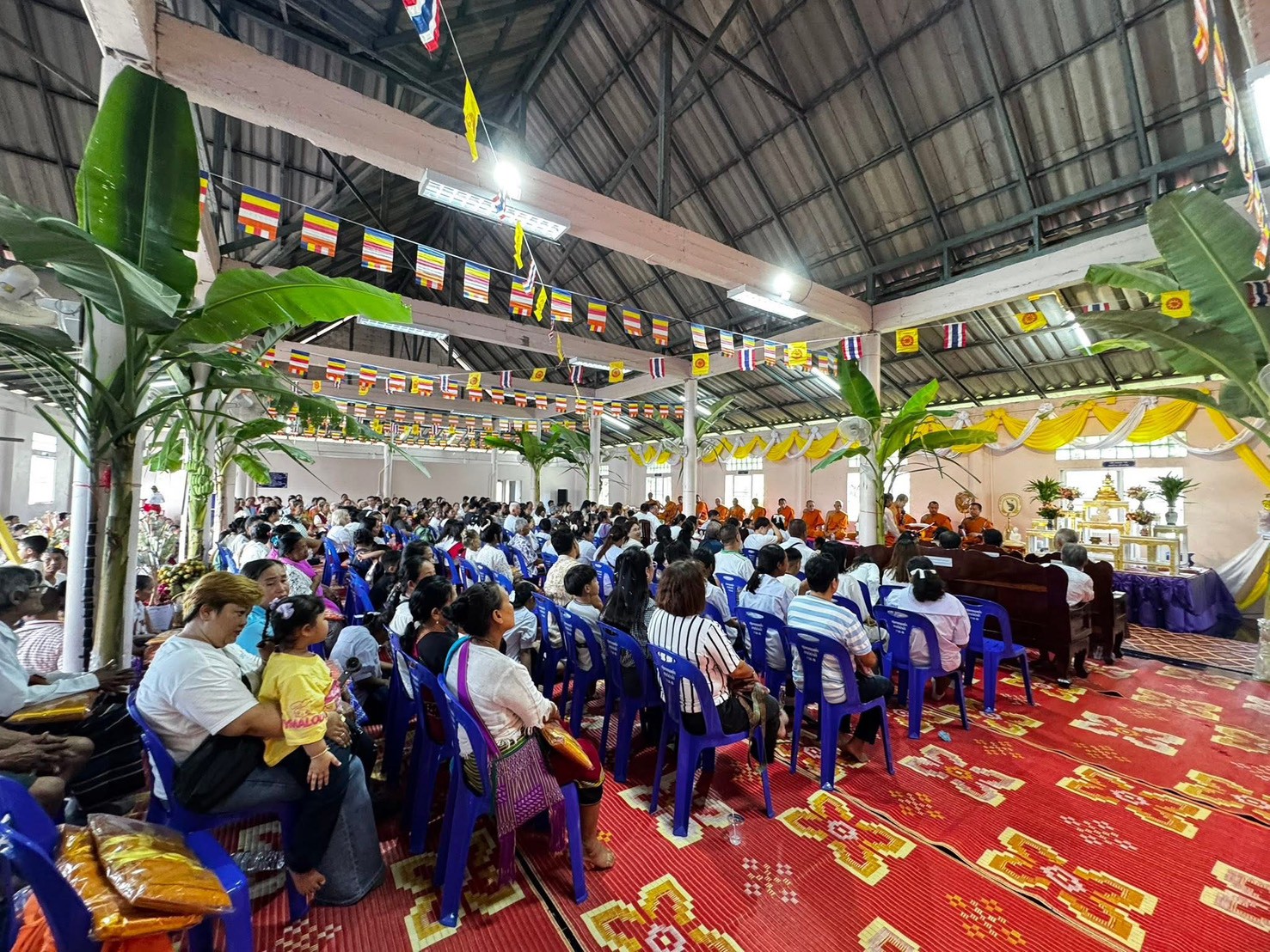 บรรยากาศภายในงาน เต็มไปด้วยรอยยิ้มและความปลื้มปิติ มีผู้มีจิตศรัทธามาร่วมงานกว่า 600 คน จนแน่นศาลา พร้อมโรงทานจากหลายภาคส่วน รวมถึงผัดซีอิ๊วจากคณะครูโรงเรียนบ้านไร่