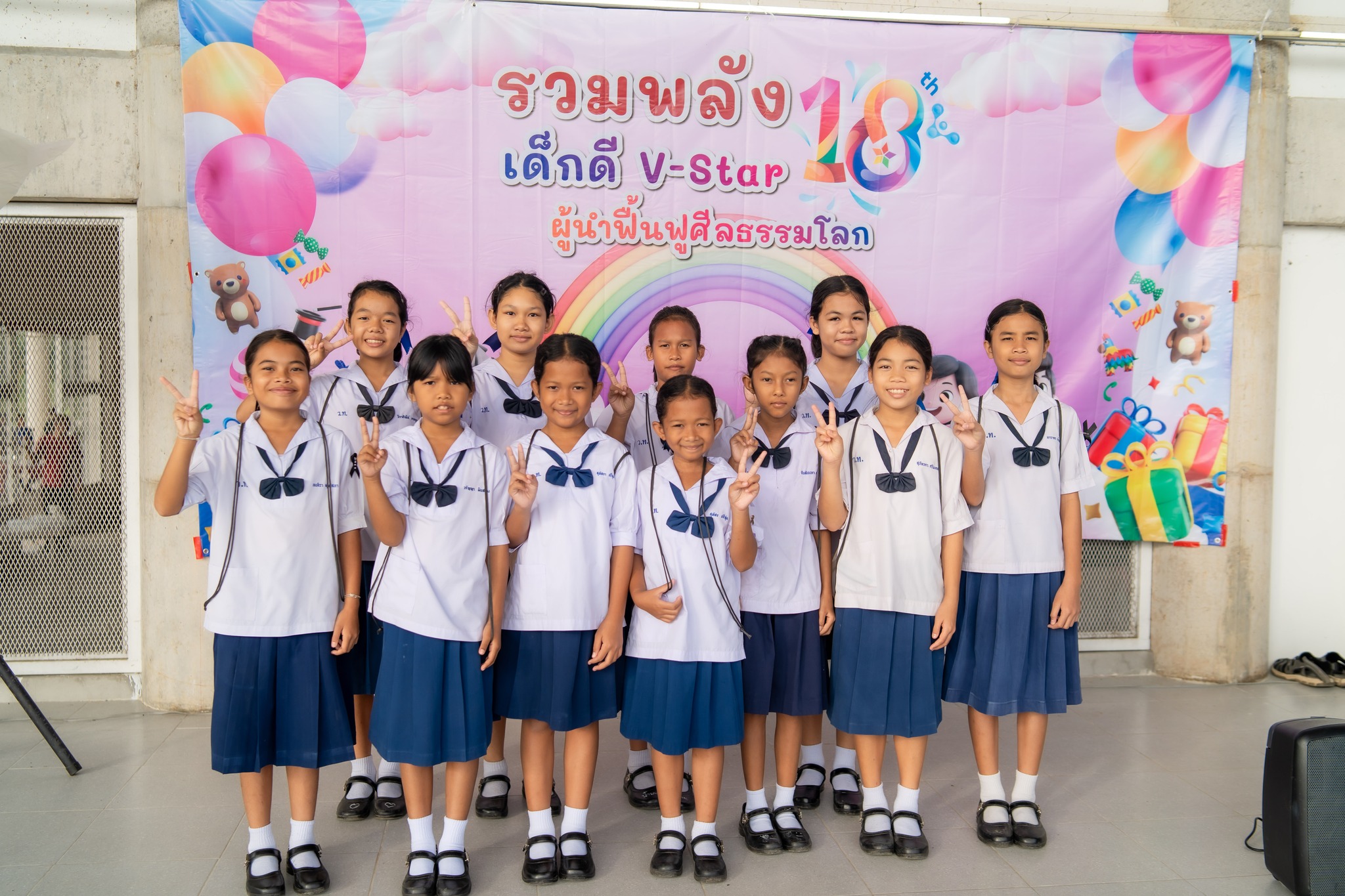 กิจกรรมในภาคสาย ลงทะเบียนแนะนำสถานที่ และสนุกสนานได้ความรู้ในฐานกิจกรรม V-Star Activity Learning ระหว่างพักเที่ยงพักรับประทานอาหาร พร้อมร่วมกิจกรรมเวทีกลาง รับรางวัลจากผู้ใหญ่ใจดี
