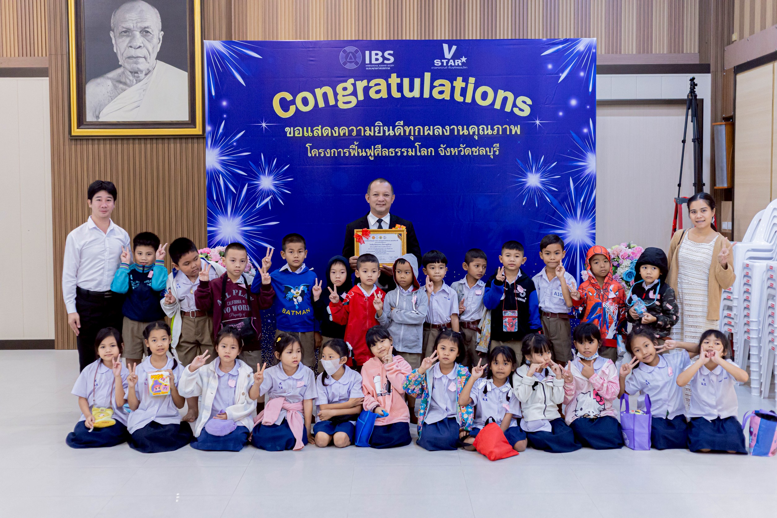 หลังจากนั้น เป็นพิธีมอบรางวัลโครงการฟื้นฟูศีลธรรมโลกเด็กดี V-Star โดยได้รับความเมตตาจาก พระครูศรีปริยัติวรกิจ ผู้ช่วยเจ้าอาวาสวัดชัยมงคล พระอารามหลวง เลขานุการผู้รักษาการแทนเจ้าคณะจังหวัดชลบุรี เมตตามอบรางวัล ได้แก่