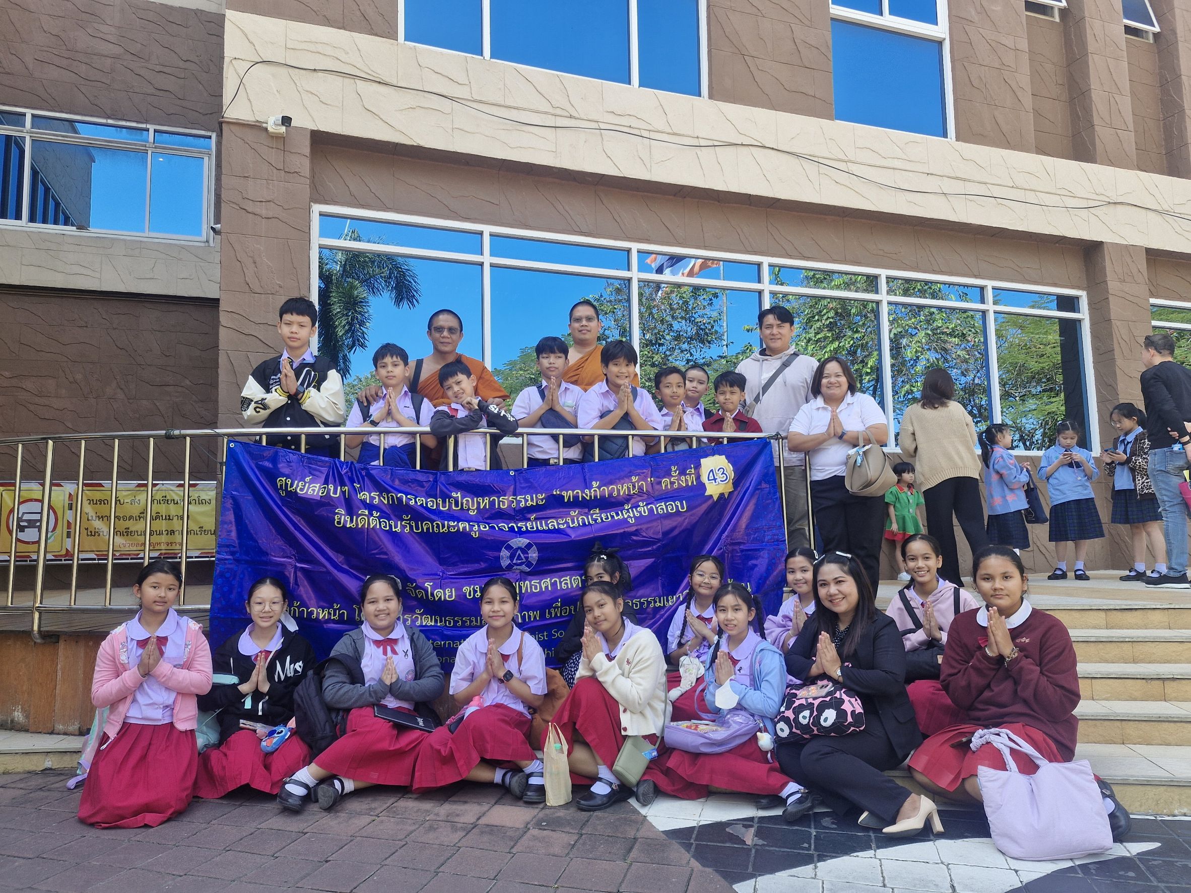 ในวันที่ 29 พฤศจิกายนนี้ ทางชมรมพุทธศาสตร์สากล โดยทีมงานผู้ประสานงานศูนย์สอบ คือ นิสิต-นักศึกษา จิตอาสา หรือ Supervisor จำนวน 1,200 คนจาก 47 สถาบันทั่วประเทศ จัดสอบโครงการตอบปัญหาธรรมะ “ทางก้าวหน้า” ครั้งที่ 43 รอบชิงชนะเลิศ ระดับจังหวัด ณ ศูนย์สอบประจำอำเภอทั่วประเทศ โดยมี นักเรียนระดับประถมศึกษาปีที่ 3 ถึงระดับมัธยมศึกษาปีที่ 6 ผ่านเข้ารอบชิงชนะเลิศฯ จำนวนกว่า 40,000 คน จาก 1,835 โรงเรียน จัดสอบ ณ ศูนย์สอบประจำอำเภอ 330 แห่งทั่วประเทศ