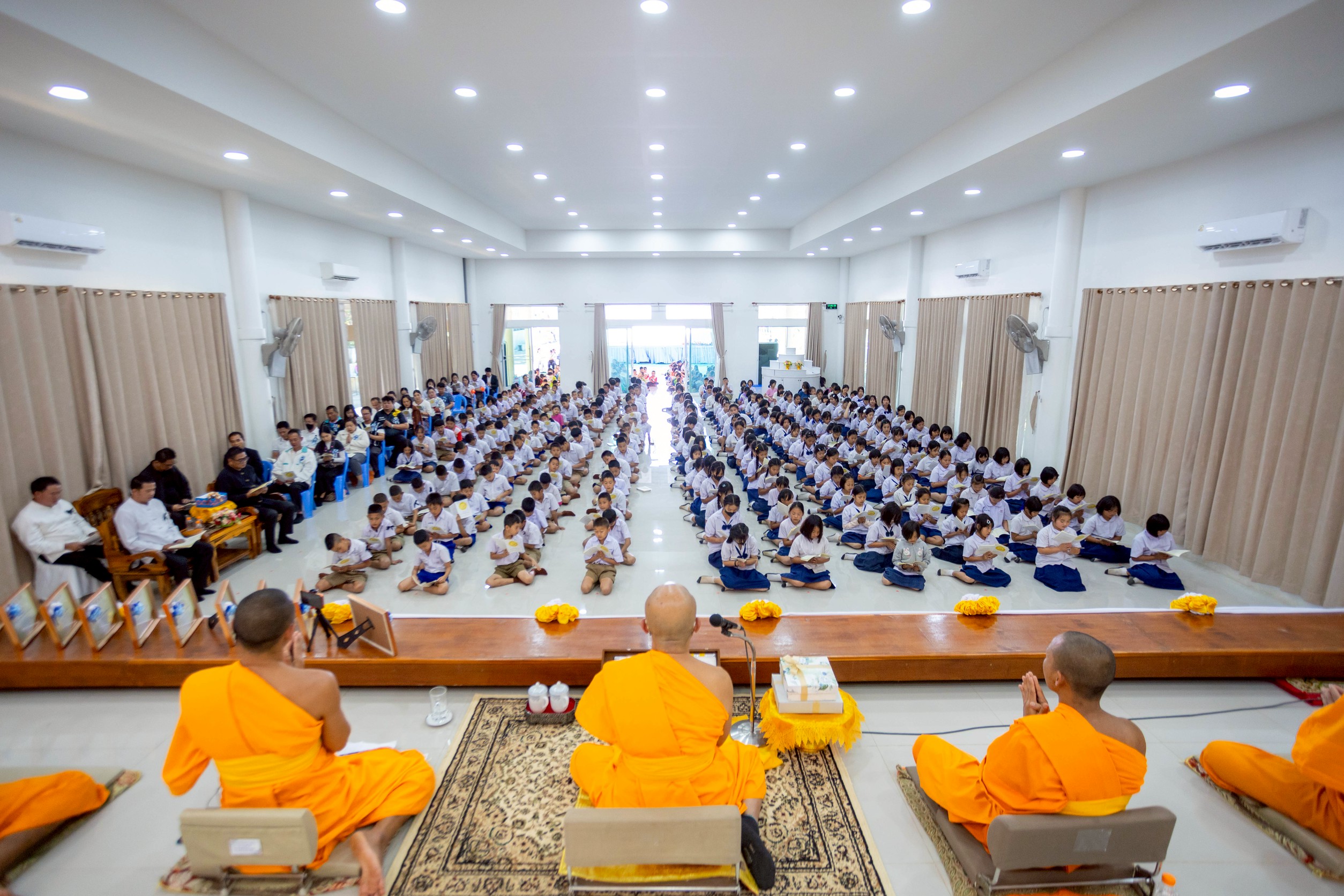 ภาคบ่าย พระครูวาปีวรมานิต ประธานส่งเสริมศีลธรรมจังหวัดแม่ฮ่องสอน เป็นประธานสงฆ์นำบูชาพระรัตนตรัย จากนั้น นายอภิชา หมู่โสภิญ ปลัดอำเภอรักษาการแทนนายอำเภอขุนยวม ได้กล่าวรายงานต่อประธานในพิธี คือ นายสากล ชนะบูรณ์ รองผู้อำนวยการสำนักงานเขตพื้นที่การศึกษาประถมศึกษา แม่ฮ่องสอน เขต 1 ให้เกียรติมาเป็นประธานฝ่ายฆราวาส กล่าวเปิดพิธี ต่อด้วย นางสาวญานิศา ธนาสาร โรงเรียนขุนยวมวิทยา ชั้นม. 6 การกล่าวคำปฏิญาณตนเด็กดี V-Star และ เด็กหญิงสุตาภัณฑ์ ชาญสารกิจ โรงเรียนเขตพื้นที่การศึกษาอำเภอขุนยวม กล่าวสุนทรพจน์หัวข้อ ระเบียบวินัยสร้างได้ด้วยศีล 5 จากนั้นทุกท่าน ได้ร่วมกันสวดมนต์ธรรมจักร และเจริญสมาธิภาวนา น้อมอุทิศถวายเป็นพระราชกุศลแด่สมเด็จพระนางเจ้าสิริกิติ์ พระบรมราชินีนาถ พระบรมราชชนนีพันปีหลวง และประธานสงฆ์ได้มอบเกียรติบัตรพร้อมมอบอุปกรณ์กีฬาแก่สถานศึกษาที่ร่วมกิจกรรม หลังจากฟังโอวาทอันทรงคุณค่า และถ่ายภาพหมู่ร่วมกัน เด็กดีทุกคนได้หอบของขวัญที่ระลึก ความประทับใจกลับบ้านโดยสวัสดิภาพ.