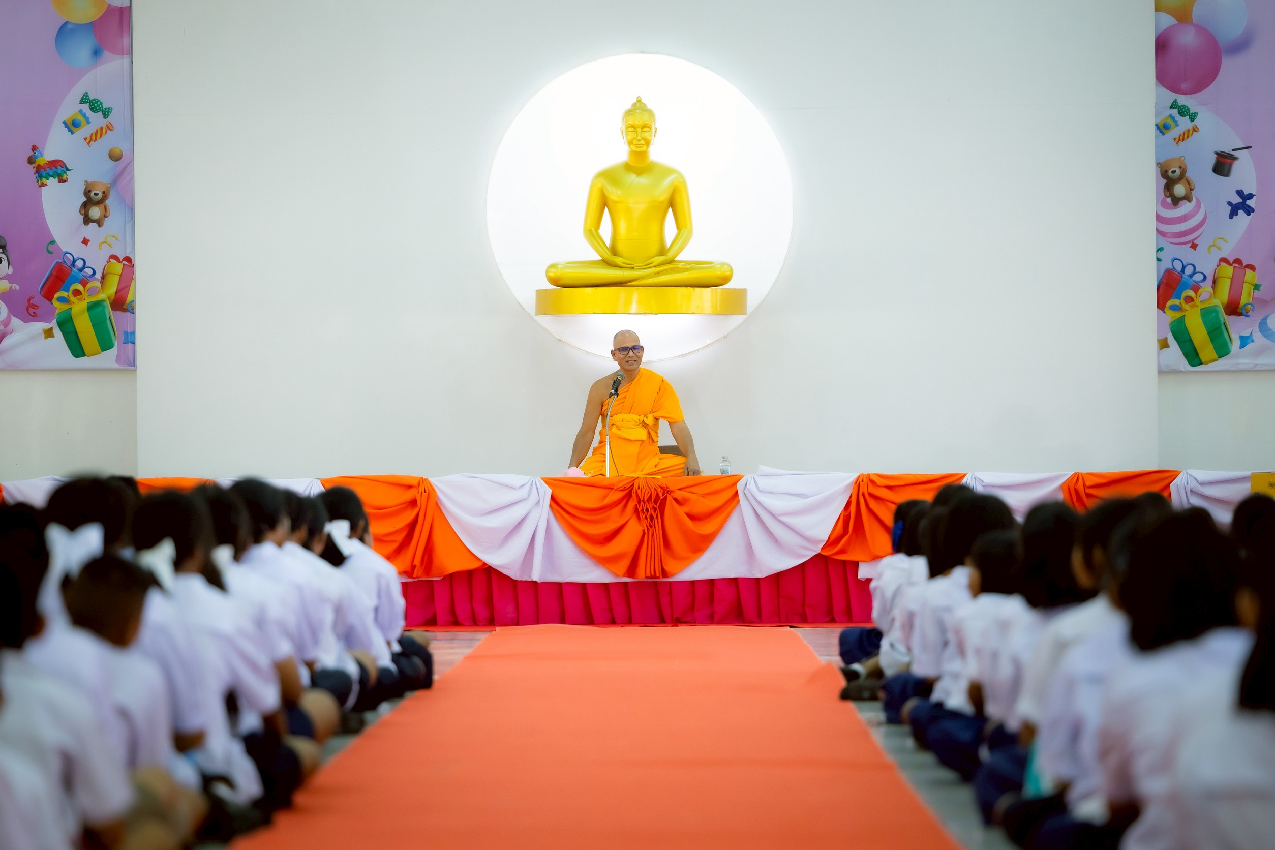 กิจกรรมภาคเช้าเริ่มด้วยการลงทะเบียนและปฐมนิเทศ จากนั้นแบ่งกลุ่มจัดกิจกรรม โดยคณะครูได้ร่วมเสวนาในหัวข้อ ผลสัมฤทธิ์โครงการฟื้นฟูศีลธรรมโลก (เด็กดี V-Star) พร้อมฟังพระธรรมเทศนา ปฏิบัติธรรม และรับของที่ระลึก ส่วนเด็กดี V-Star เข้าร่วมกิจกรรมฐานการเรียนรู้ 3 ฐาน ได้แก่ ฐานพุทธประวัติ ฐานกฎแห่งกรรม และฐานความเคารพ เพื่อฝึกฝนสมาธิและจิตใจให้เป็นระเบียบ พร้อมเรียนรู้หลักธรรมผ่านกิจกรรมเชิงสร้างสรรค์