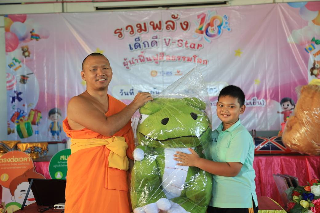 ช่วงเช้าเด็กๆ ได้ร่วมกิจกรรม V-Star Activity Learning ฝึกฝนตนเองผ่านฐานการเรียนรู้สุดสร้างสรรค์ ทั้ง “พุทธประวัติ”, “กฎแห่งกรรม” และ “วินัยแห่งความเคารพ” พร้อมกิจกรรมตอบปัญหาธรรมะที่ได้ทั้งทบทวนความรู้และได้ข้อคิดดีๆ
