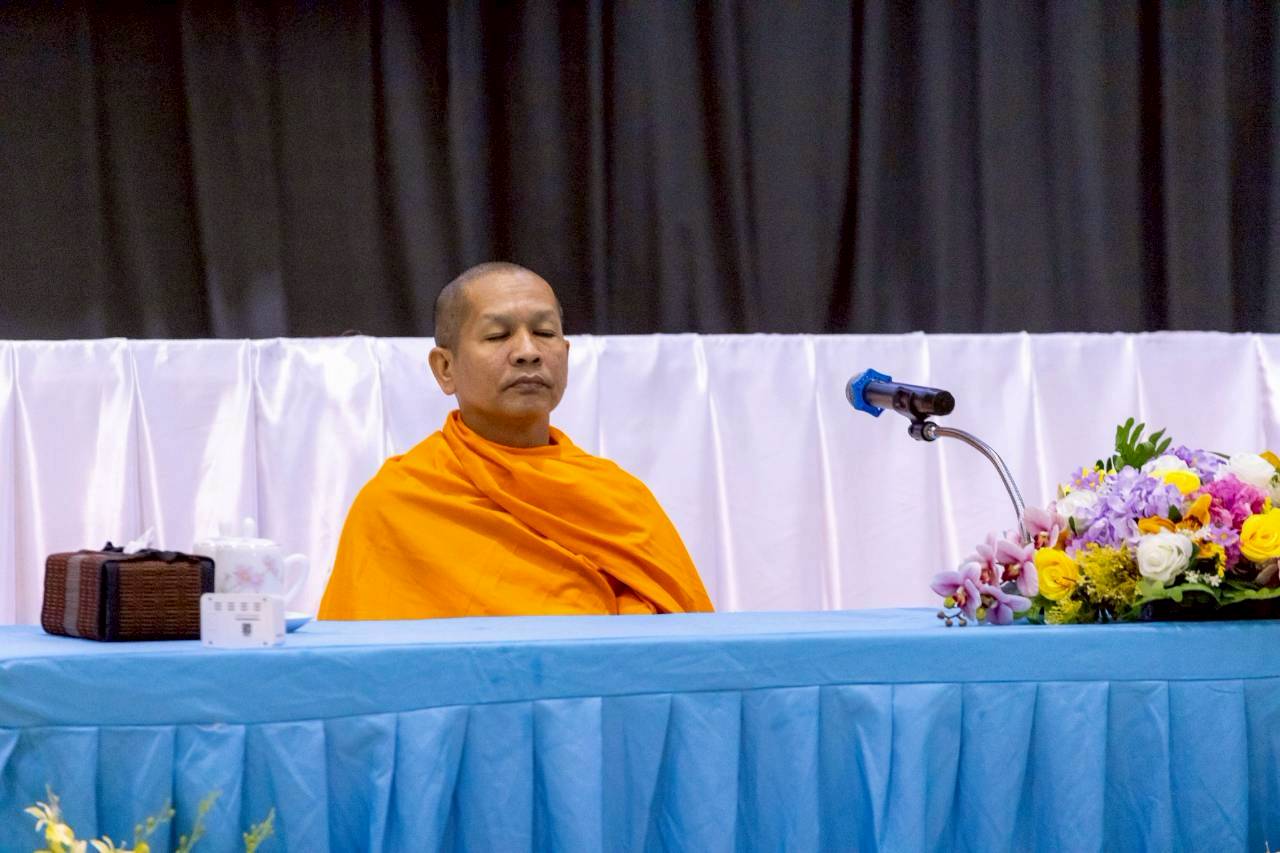 จากนั้นได้รับความเมตตาจาก พระมหาบุญเอื้อน ปุญฺญสาโร ผู้ช่วยเจ้าอาวาสวัดพระธรรมกาย ผู้ช่วยผู้อำนวยการสำนักประธานคณะกรรมการบริหาร เดินทางมาเป็นประธานสงฆ์ ร่วมถ่ายภาพหมู่ประวัติศาสตร์ และนำบูชาพระรัตนตรัย