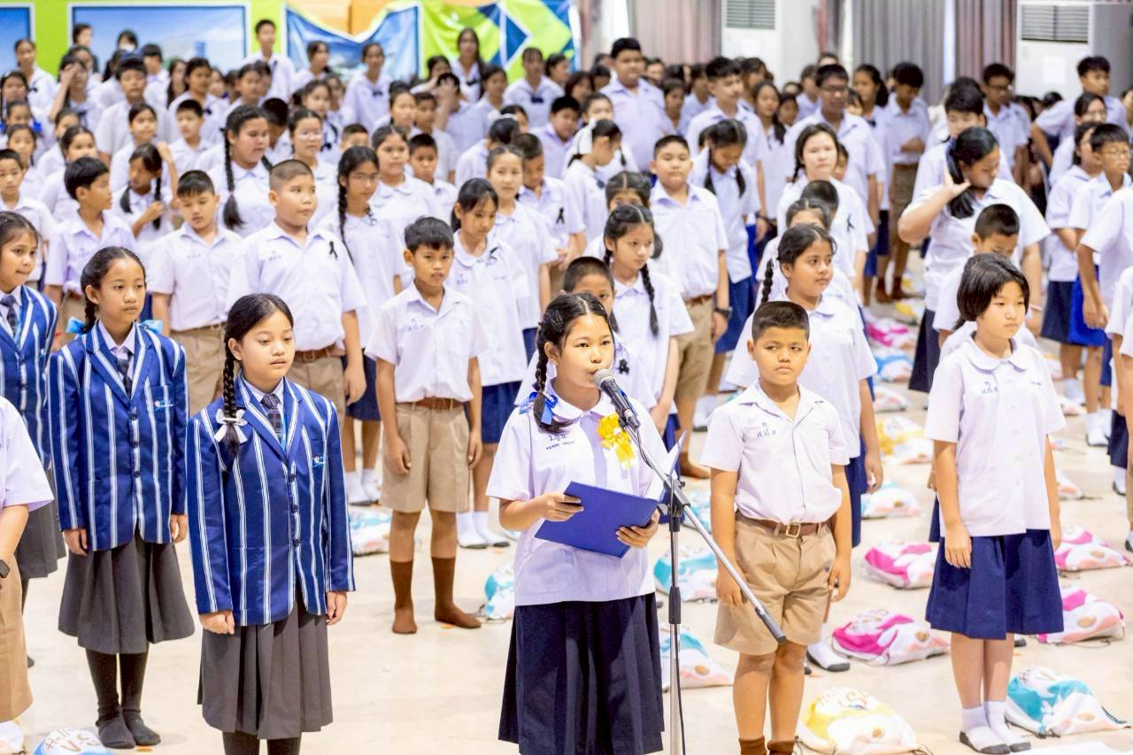 หลังจากนั้น ได้รับเกียรติจาก ดร.ภูมิ พระรักษา รองผู้อำนวยการสำนักงานเขตพื้นที่การศึกษาประถมศึกษาสมุทรปราการ เขต 1 เป็นประธานในพิธีกล่าวเปิดงาน โดยมี ดร.ภาพร ภูทองประเสริฐ สมาชิกสภาเทศบาลสมุทรปราการ ประธานคณะทำงานกล่าวต้อนรับ ก่อนที่ตัวแทนเด็กดี V-Star ถวายพานธูปเทียนแพแด่ประธานสงฆ์ นำกล่าวแสดงตนเป็นพุทธมามะกะ และกล่าวคำปฏิญาณตน