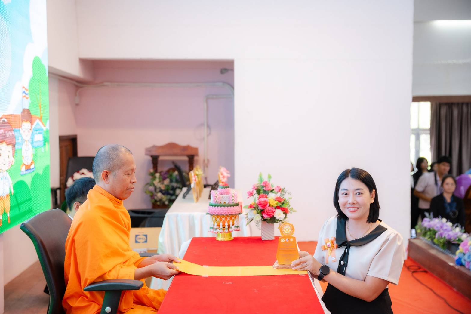 หลังจากนั้นประธานสงฆ์ ได้มอบโล่รางวัลธรรมจักรเชิดชูเกียรติระดับประเทศ แก่โรงเรียนที่มียอดสวดบทธัมมจักกัปปวัตตนสูตรสูงสุดระดับประเทศ ประเภทโรงเรียนขนาดกลาง พร้อมมอบเกียรติบัตรแก่โรงเรียนที่ร่วมกิจกรรม และให้โอวาทอันทรงคุณค่าแก่คณะครูและนักเรียน ได้นำหลักธรรมไปปรับใช้ในชีวิตประจำวัน เพื่อเป็นเยาวชนต้นแบบที่สร้างประโยชน์แก่ตนเอง ครอบครัว และประเทศชาติ ก่อนถ่ายภาพหมู่ประวัติศาสตร์ร่วมกัน