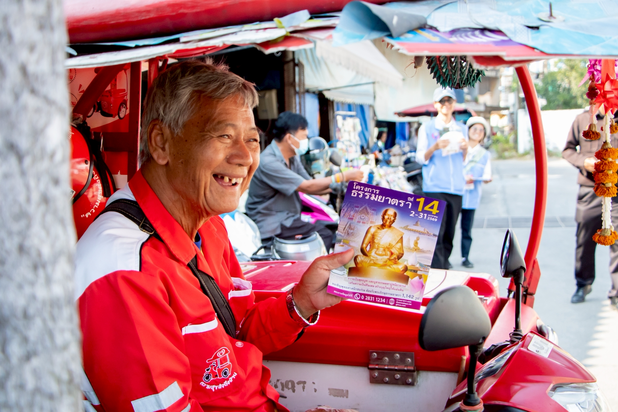 บรรยากาศเต็มไปด้วยรอยยิ้มของน้อง ๆ เยาวชนที่ออกเดินประชาสัมพันธ์เชิญชวนชาวชุมชนสามพรานให้มาร่วมงานบุญ พร้อมกล่าวคำเชิญชวนด้วยน้ำเสียงสดใสเป็นกันเอง
