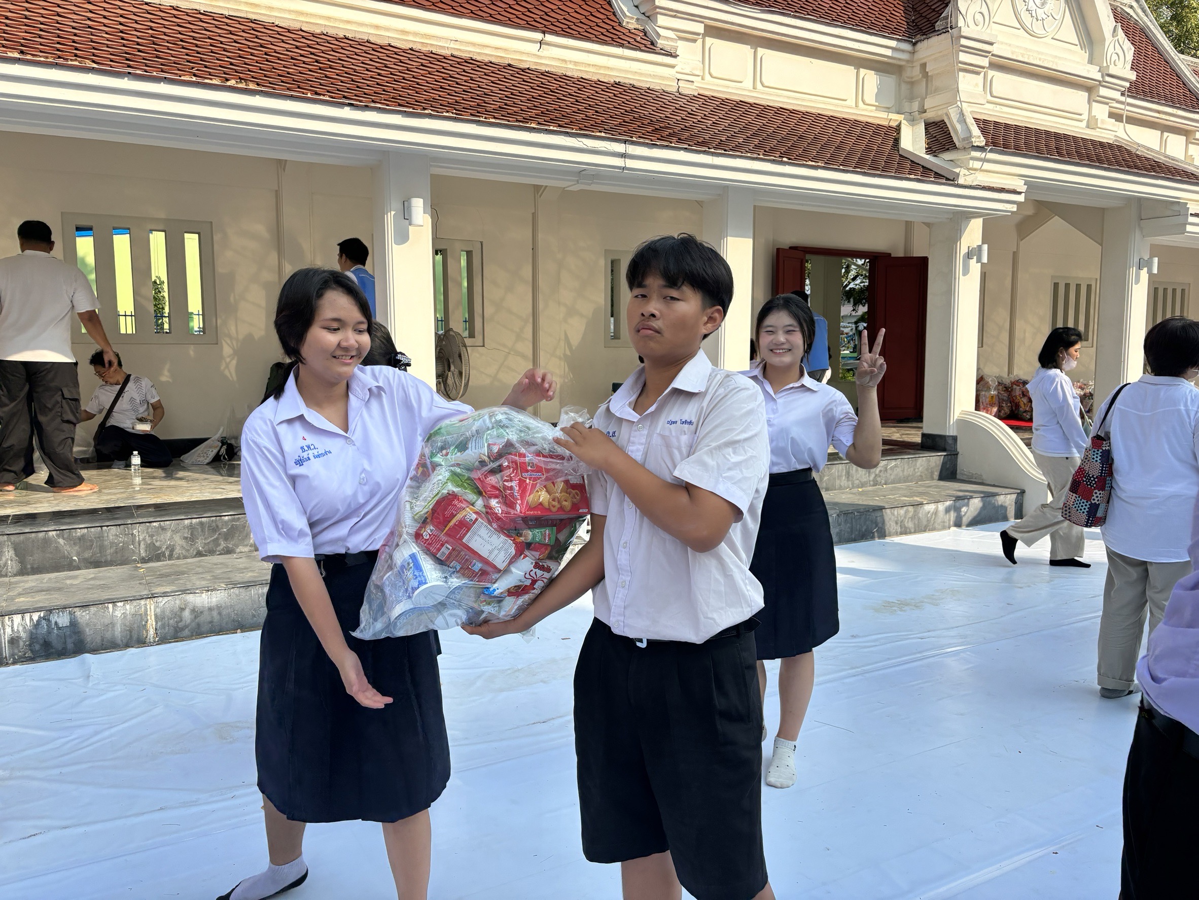 โรงเรียนธัญญาพัฒนวิทย์ จังหวัดกาฬสินธุ์ โดยการนำของคุณครูนรารัตน์ ระดาฤทธิ ครูผู้ประสานงานโครงการฟื้นฟูศีลธรรมโลก พานักเรียนมาร่วมงานบุญจำนวน 24 คน และผู้ปกครองอีก 2 ท่าน