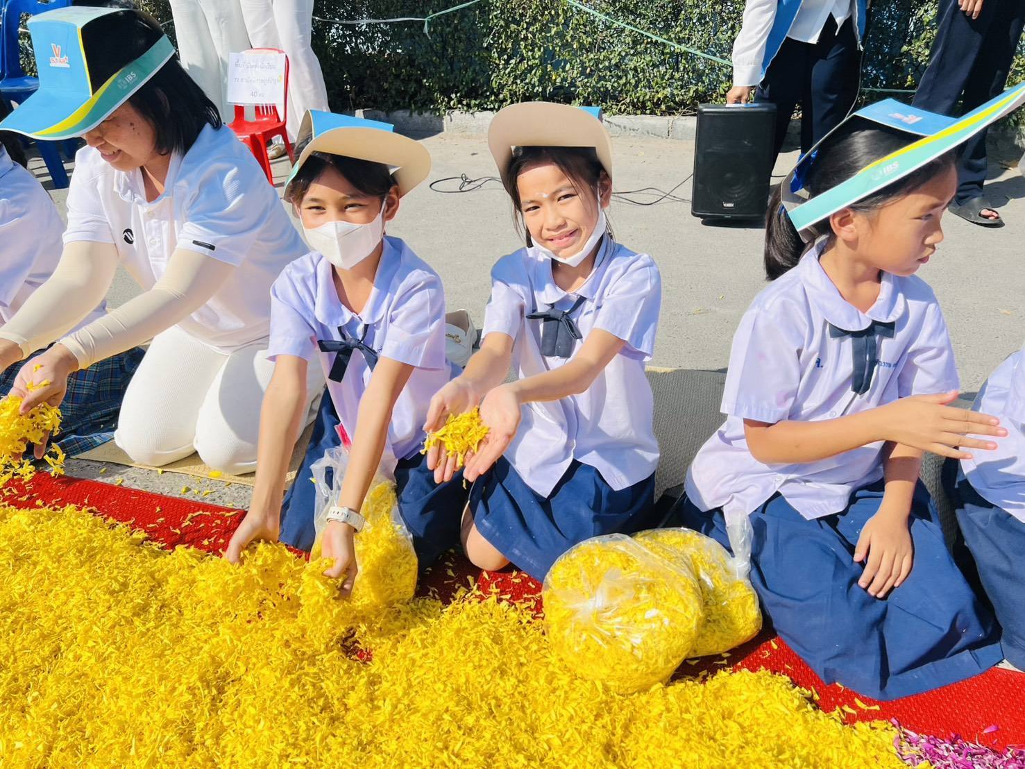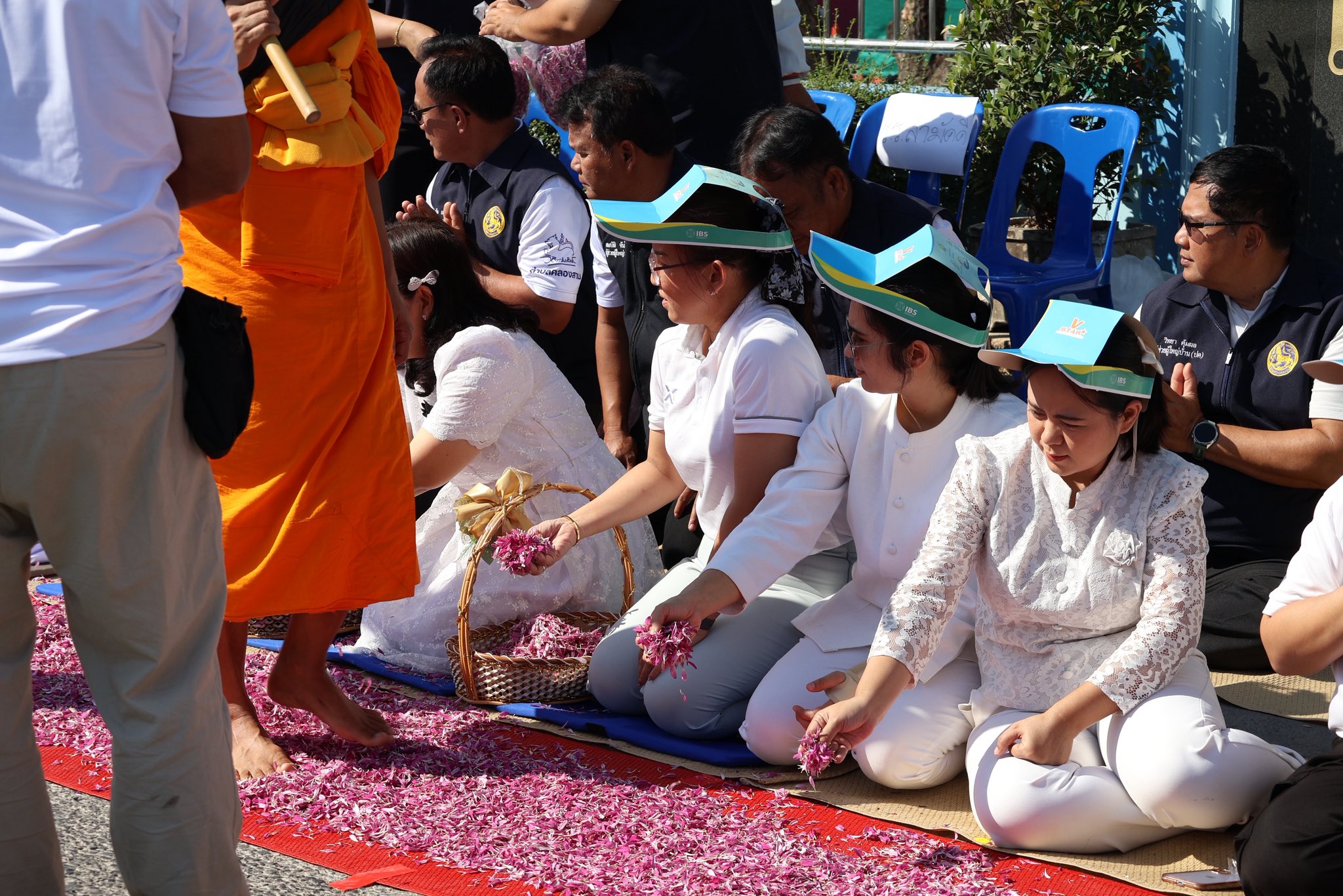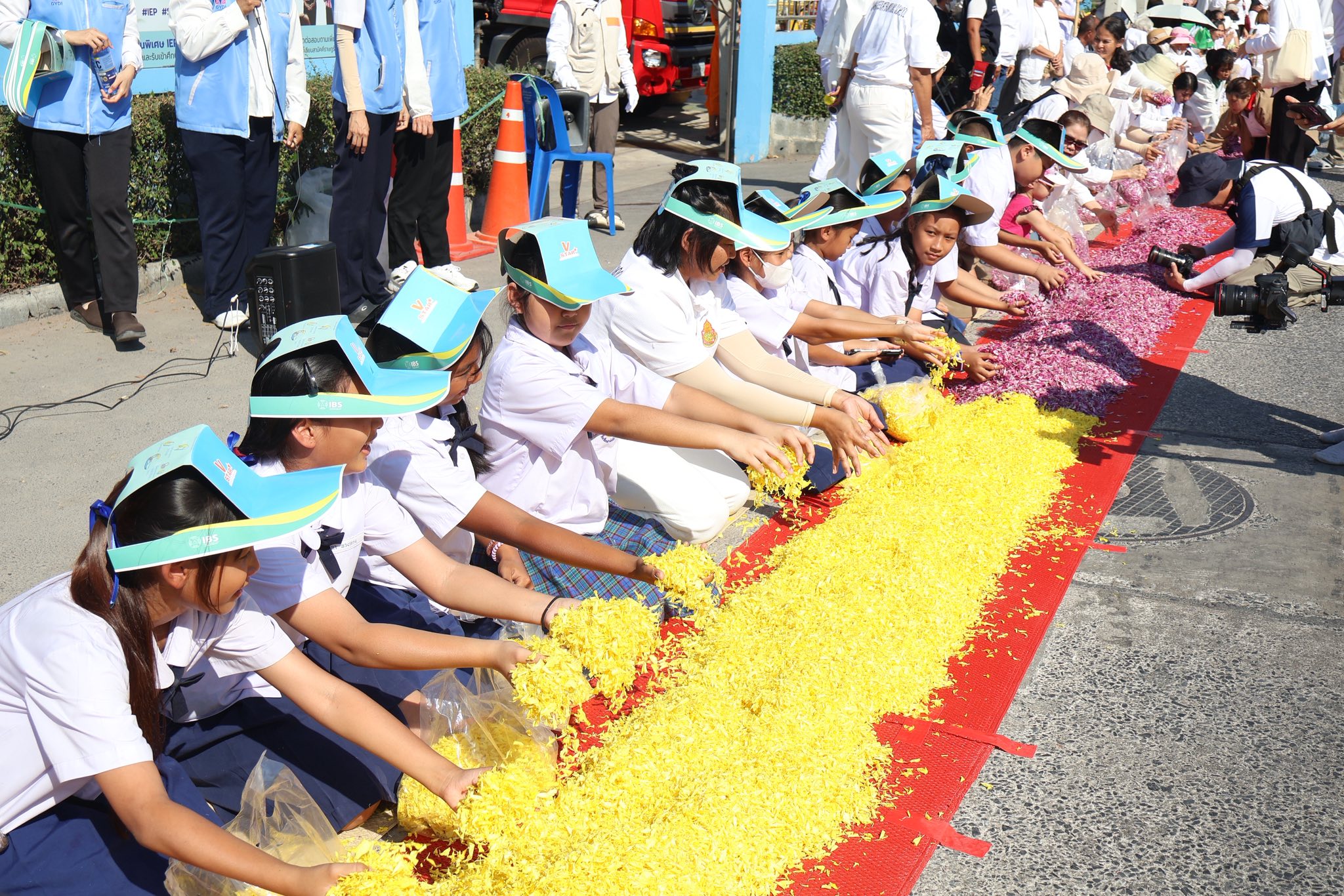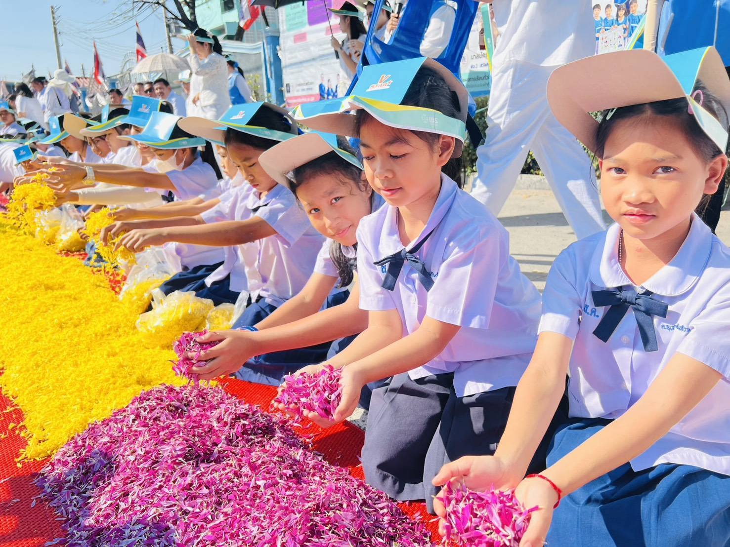 จากนั้นนักเรียนเด็กดี V-Star และคณะครู ร่วมกันโปรยดอกไม้แสดงความเคารพ ต้อนรับคณะพระธรรมยาตรา จากหน้าโรงเรียนสามัคคีราษฎร์บํารุง ถึงวัดพระธรรมกาย บรรยากาศเต็มไปด้วยความสงบ งดงาม อิ่มเอมใจ และปลื้มใจ