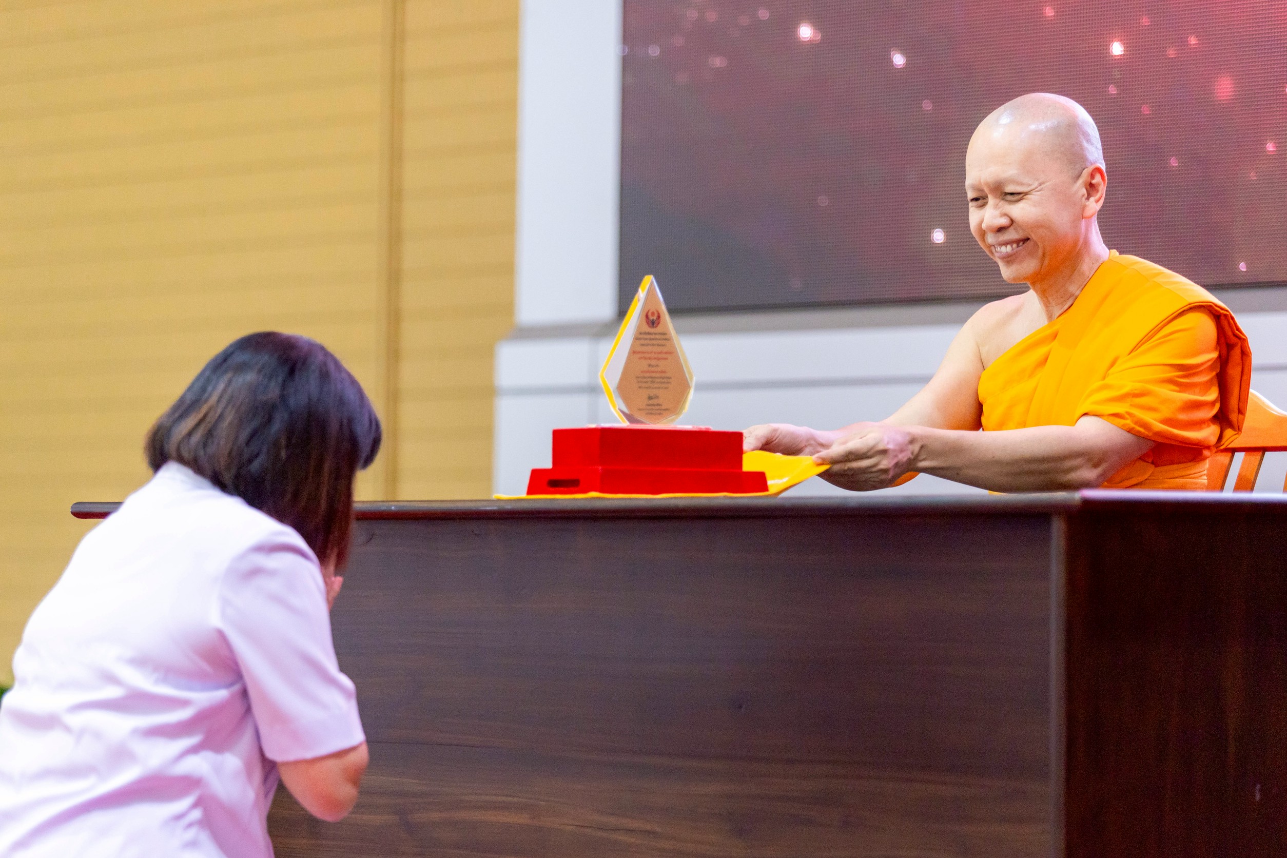 จากนั้นมีพิธีมอบรางวัลเกียรติยศให้กับคณะจารย์และนิสิตนักศึกษาผู้ที่ได้ทุ่มเททำหน้าที่ จัดสอบโครงการตอบปัญหาธรรมะทางก้าวหน้า ในปี 2568 ที่ผ่านมา ดังนี้ รางวัลอาจารย์ประสานงานดีเด่น รางวัล Supervisor ดีเด่น รางวัลหัวหน้าจังหวัดดีเด่น และรางวัลการสอบตอบปัญหาธรรมะ “ทางก้าวหน้า” ครั้งที่ 43 ระดับอุดมศึกษา