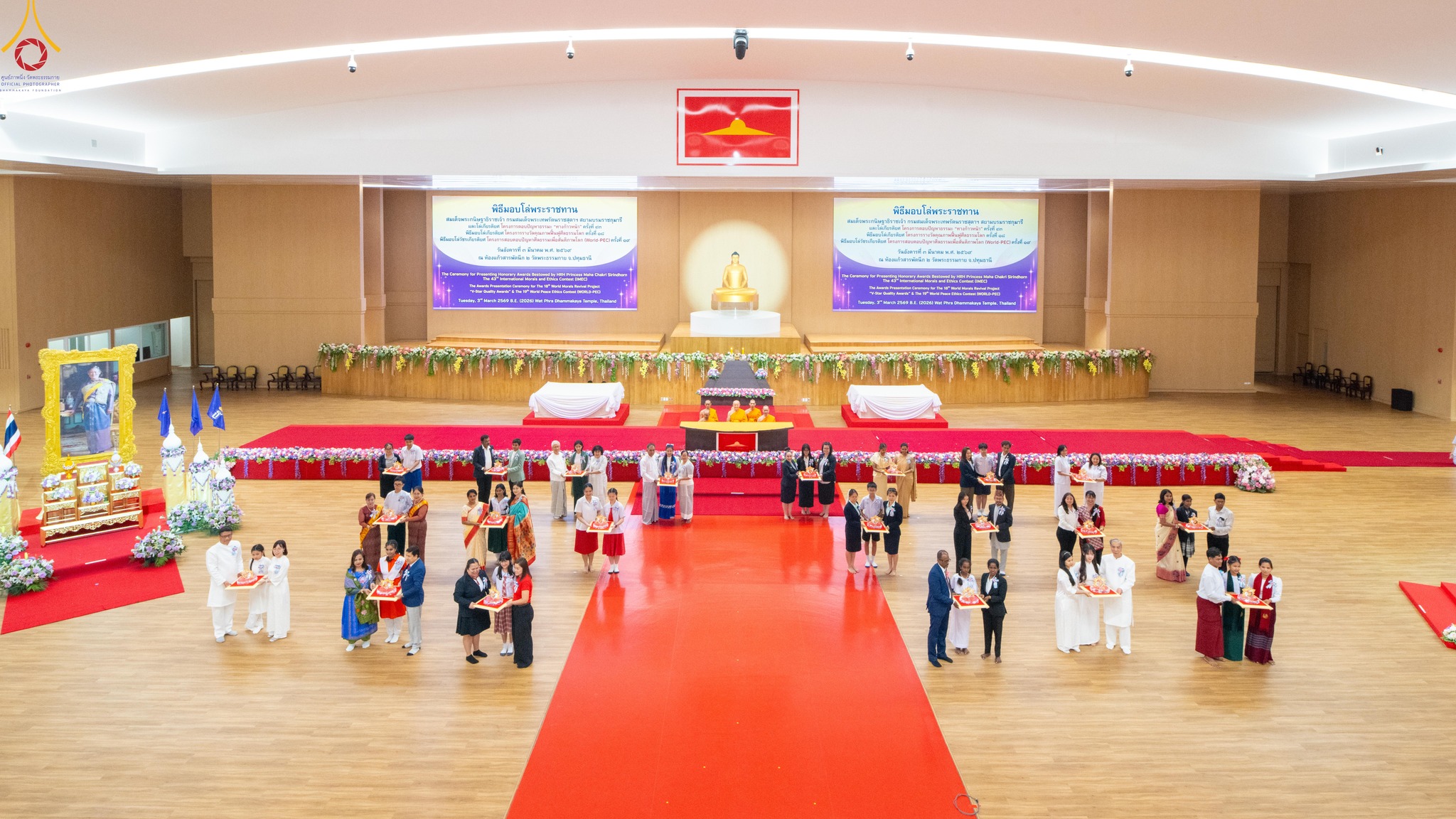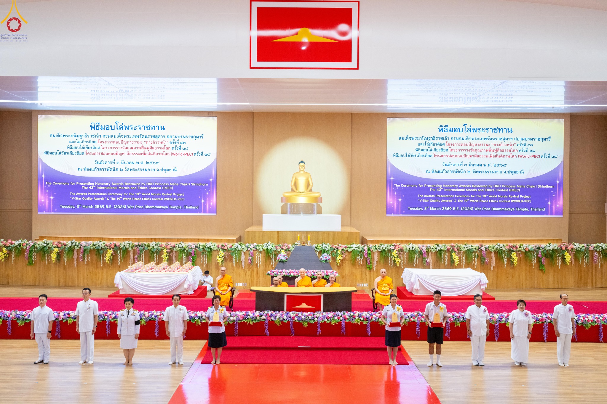 วันมาฆบูชา ที่ 3 มีนาคมที่ผ่านมา สมาคมพุทธศาสตร์สากล ร่วมกับชมรมพุทธศาสตร์สากล ชมรมพุทธศาสตร์ของสถาบันอุดมศึกษา 34 แห่งทั่วประเทศ มูลนิธิธรรมกาย และชมรมส่งเสริมศีลธรรมเพื่อสันติภาพโลก จัดพิธีมอบโล่พระราชทาน สมเด็จพระกนิษฐาธิราชเจ้า กรมสมเด็จพระเทพรัตนราชสุดาฯ สยามบรมราชกุมารี และโล่เกียรติยศ โครงการตอบปัญหาธรรมะ "ทางก้าวหน้า" ครั้งที่ 43 / พิธีมอบโล่เกียรติยศ โครงการรางวัลคุณภาพฟื้นฟูศีลธรรมโลก ครั้งที่ 18 / พิธีมอบโล่วัชรเกียรติยศ โครงการสอบตอบปัญหาศีลธรรมเพื่อสันติภาพโลก (World-PEC) ครั้งที่ 19 ณ ห้องแก้วสารพัดนึก 2 วัดพระธรรมกาย จังหวัดปทุมธานี