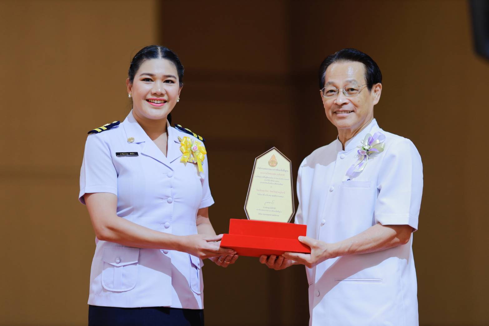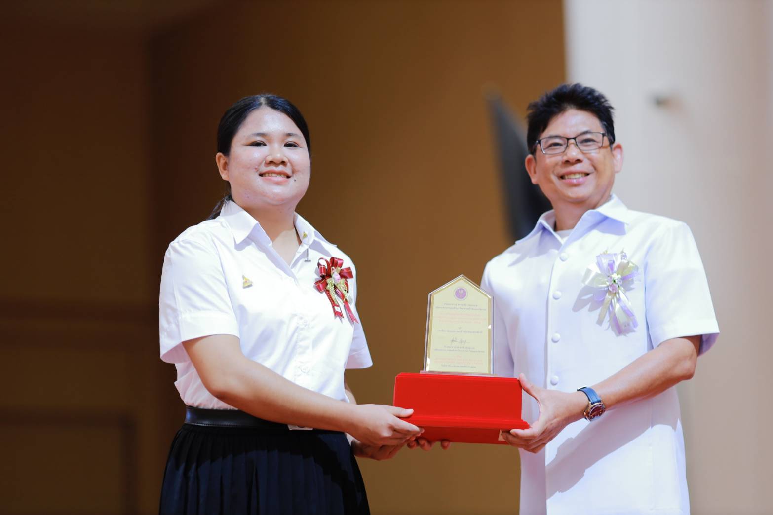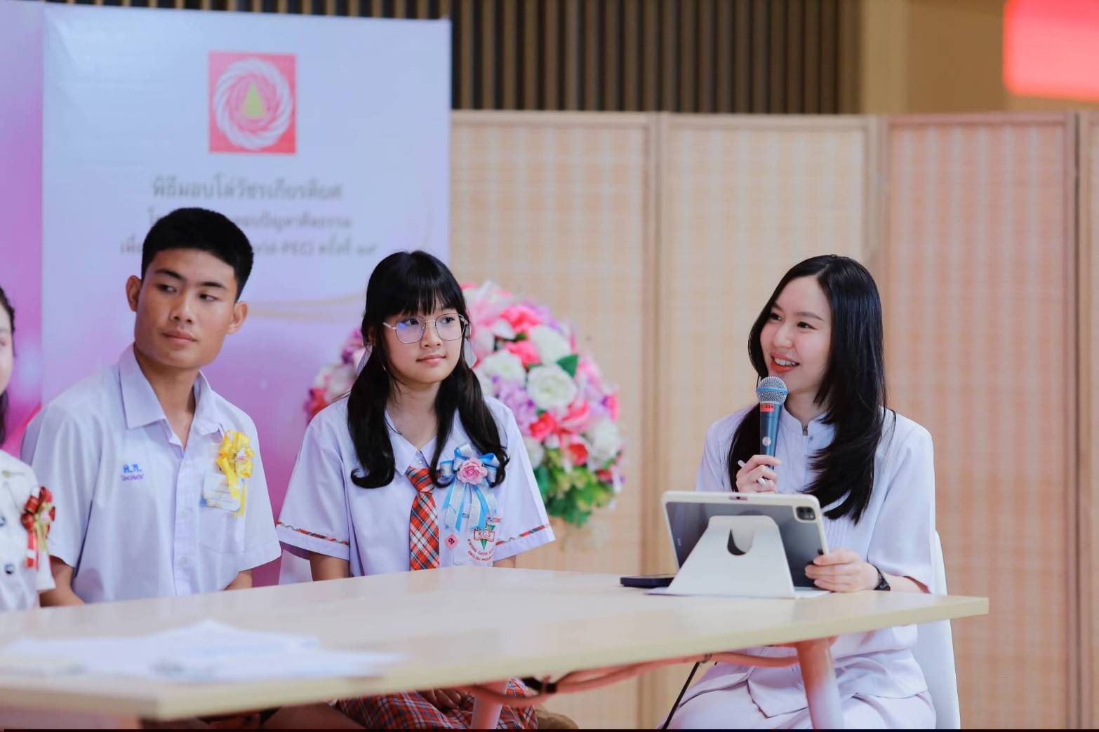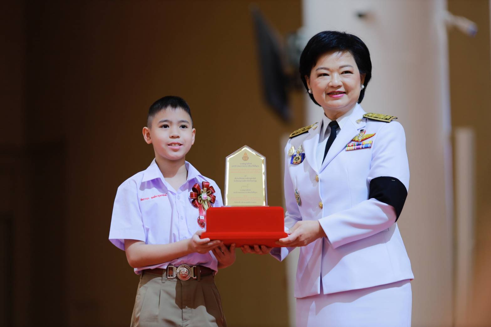 -นายธีภพ อนุไพร ผู้แทนรางวัลคุณภาพฟื้นฟูศีลธรรมโลก (VQA) ประเภทเครือข่ายเยาวชนจิตอาสาผู้นำฟื้นฟูศีลธรรมโลกดีเด่น โรงเรียนแคนดงพิทยาคม จังหวัดบุรีรัมย์