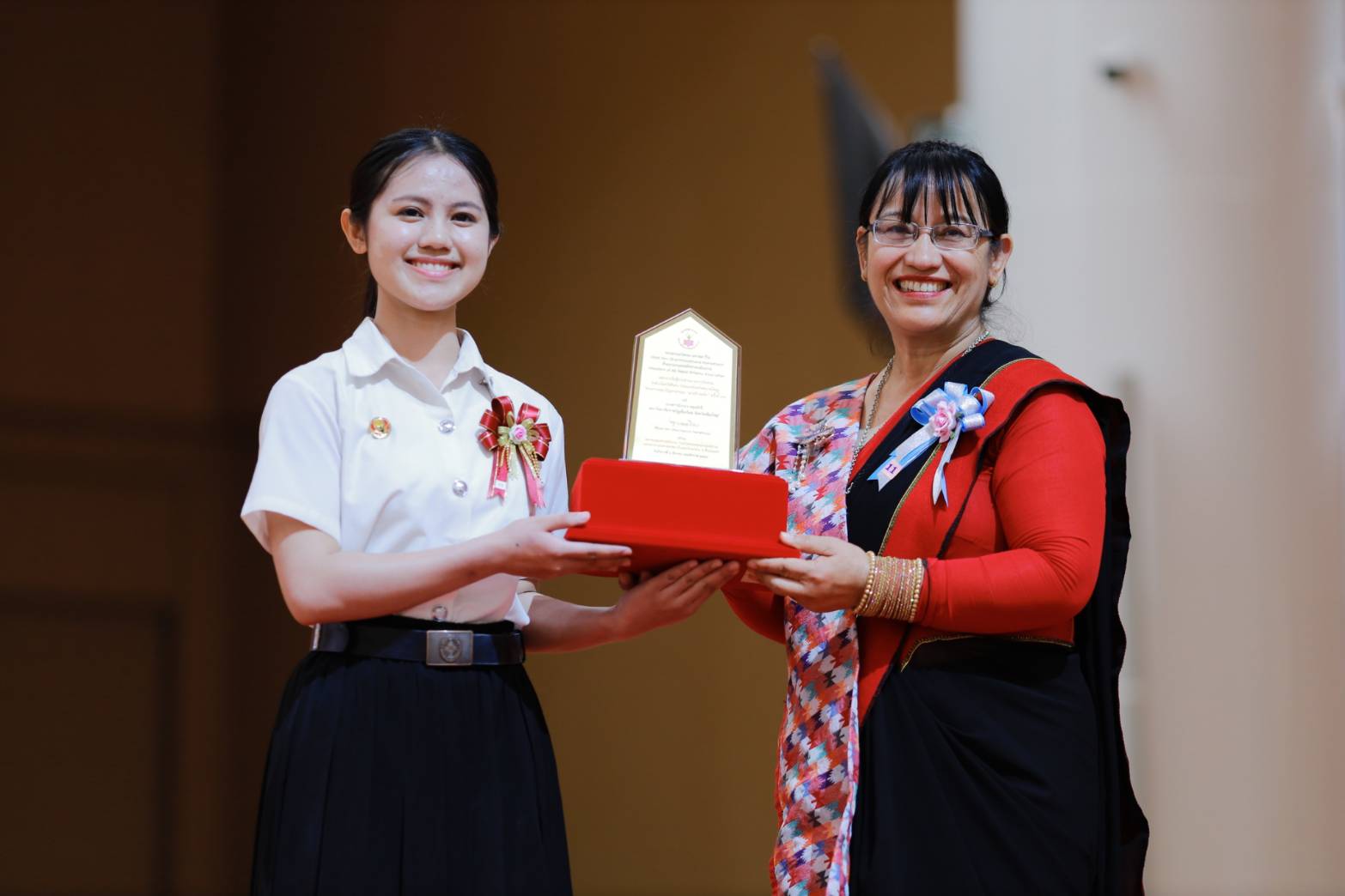 - นางสาวแมรี่ อากาศวรรธนะ ผู้ได้รับรางวัลชนะเลิศ ระดับมัธยมศึกษาตอนปลาย ภาคภาษาอังกฤษ The World Peace Ethics Contest 2025 โรงเรียนกว่างจ้าว กรุงเทพมหานคร