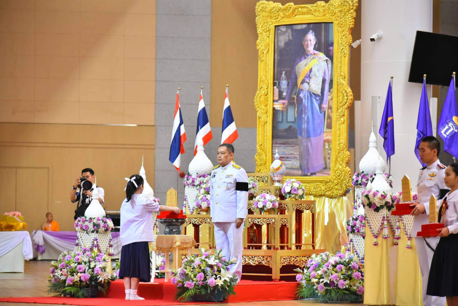 โดยได้รับความเมตตาจากหลวงพ่อทัตตชีโว เดินทางมาเป็นประธานสงฆ์ หลังจากนั้นนายเอกวิทย์ มีเพียร ผู้ว่าราชการจังหวัดปทุมธานี เปิดกรวยกระธงดอกไม้ถวายราชสักการะ และถวายความเคารพเบื้องหน้าพระฉายาลักษณ์ สมเด็จพระกนิษฐาธิราชเจ้า กรมสมเด็จพระเทพรัตนราชสุดา ฯ สยามบรมราชกุมารี