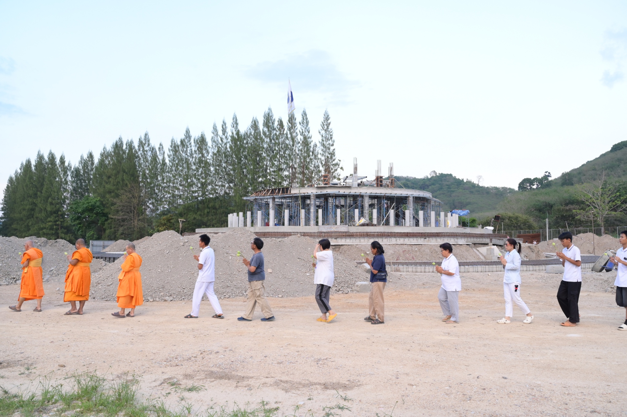 ในช่วงเย็น จะเป็นกิจกรรมเวียนประทักษิณรอบองค์พระเจดีย์เพื่อสร้างสันติภาพโลกจังหวัดระยอง ร่วมกับคณะสงฆ์ คณะกัลยาณมิตรจังหวัดระยองในทุก ๆ วัน จากนั้นสวดมนต์ทำวัดเย็น และนั่งสมาธิ โดยได้รับความเมตตาจาก พระอาจารย์นิพนธ์ ธมฺมพนฺโธ หัวหน้าศูนย์ประสานงานกิจกรรมฟื้นฟูศีลธรรมโลก สถาบันพัฒนาเยาวชนโลก เมตตาให้ธรรมะ ในหัวข้อ ความจริงของชีวิตที่เราไม่เคยลืม และเรื่องพระคุณพ่อแม่
