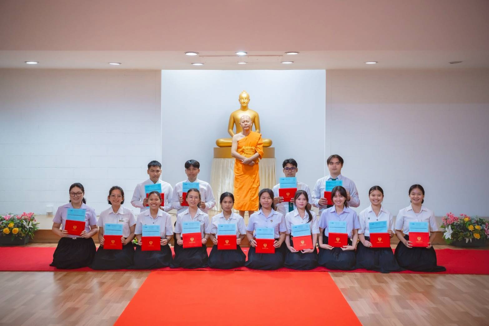 ในการนี้ ได้รับความเมตตาจาก พระครูสมุห์ธานินทร์ ปุญฺญนนฺโท ผู้ช่วยเจ้าอาวาสวัดพระธรรมกาย ผู้อำนวยการสถาบันพัฒนาเยาวชนโลก เป็นประธานสงฆ์ ในพิธีมอบปริญญาบัตรในทางธรรมแก่บัณฑิตชมรมพุทธฯ พร้อมทั้งให้โอวาทพิเศษแก่น้อง ๆ ปี 4 ชมรมพุทธ หลังจากนั้นน้องๆ ได้ถวายใบสมัครอาสาพันธุ์ตะวัน พร้อมรับของที่ระลึก และถ่ายภาพประวัติศาสตร์ร่วมกัน