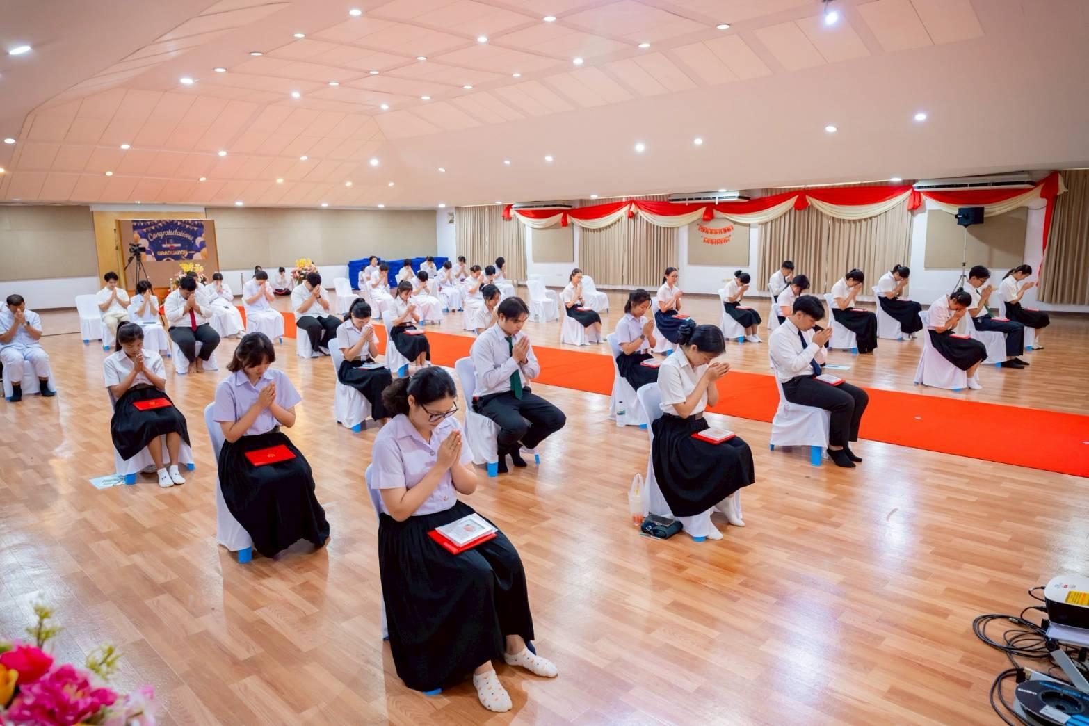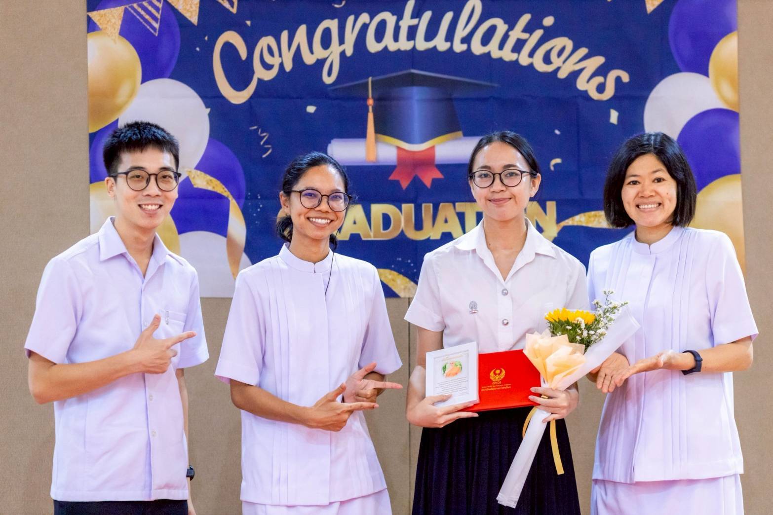 ช่วงท้ายกิจกรรม พี่ ๆ สถาบันพัฒนาเยาวชนโลก ได้มอบดอกไม้แสดงความยินดีกับน้องปี 4 และตัวแทนน้องชมรมพุทธ Boom ให้พี่ปี 4 ตัวแทนพี่ศูนย์ประสานงานเครือข่ายอุดมศึกษาแสดงความยินดี และอวยพรให้กับน้องๆ เสร็จสิ้นกิจกรรมด้วยความซึ้งใจ และภาคภูมิใจ จากรุ่นพี่สู่รุ่นน้อง ก้าวต่อไปสู่เส้นทางสว่าง พร้อมกับสถาบันพัฒนาเยาวชนโลก สร้างเยาวชนให้เป็นคนเก่งและคนดีมีศีลธรรม.