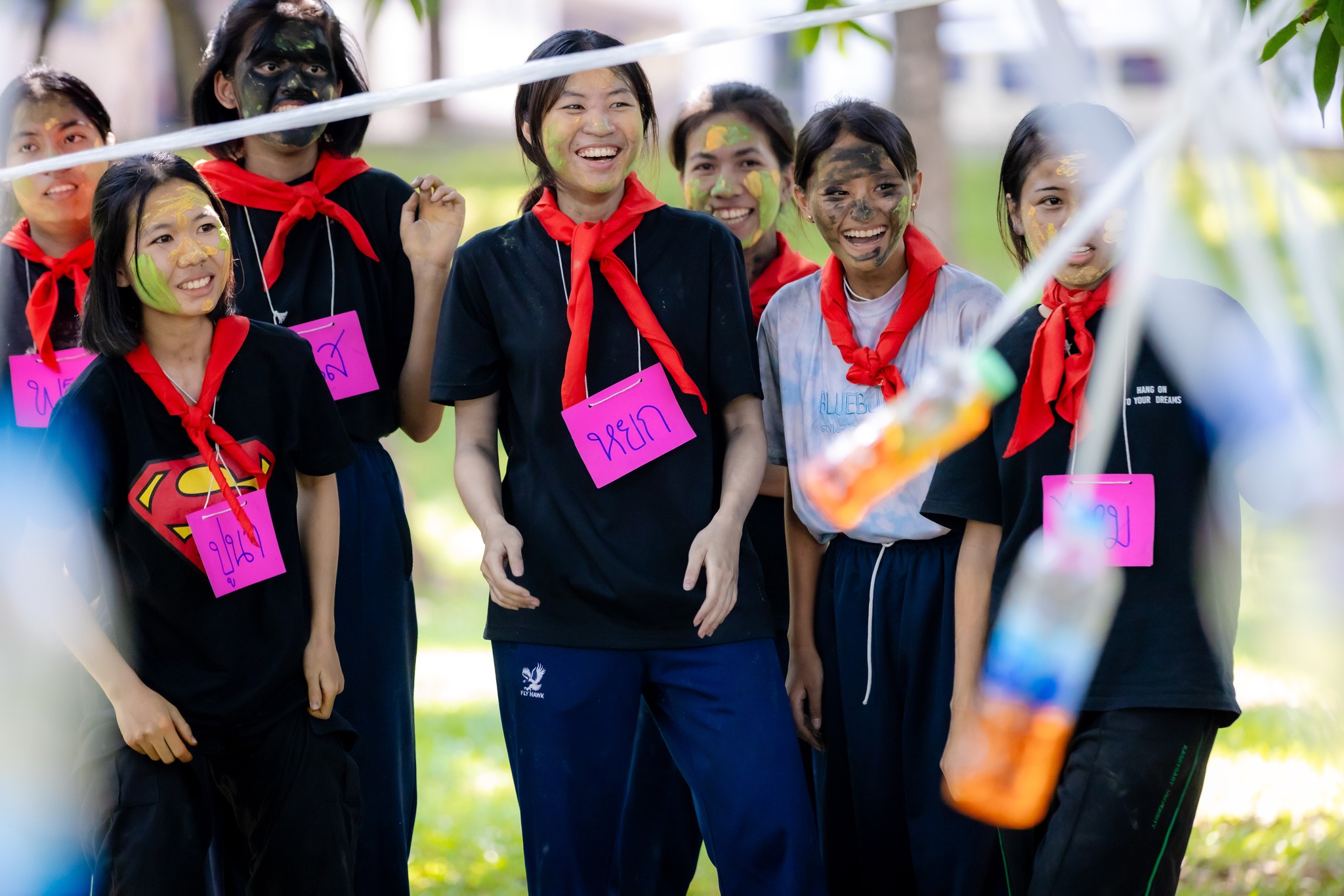 ภาคบ่ายเป็นการฝึกระบบหมู่ ทำกิจกรรม Walk Rally ผ่านฐานเกมส์ต่าง ๆ อย่างสนุกสนาน และกิจกรรมชิงธง ที่เน้นการฝึกวินัย ความเคารพ และความอดทนอย่างเข้มข้น ทุกคนได้เรียนรู้การทำงานเป็นทีม ร่วมแรงร่วมใจแก้ปัญหาและฝ่าฟันอุปสรรคไปด้วยกันเป็นทีม สมกับสโลแกนที่ว่า “เดี่ยวก็ยอด หมู่ก็เยี่ยม ไร้เทียมทาน”