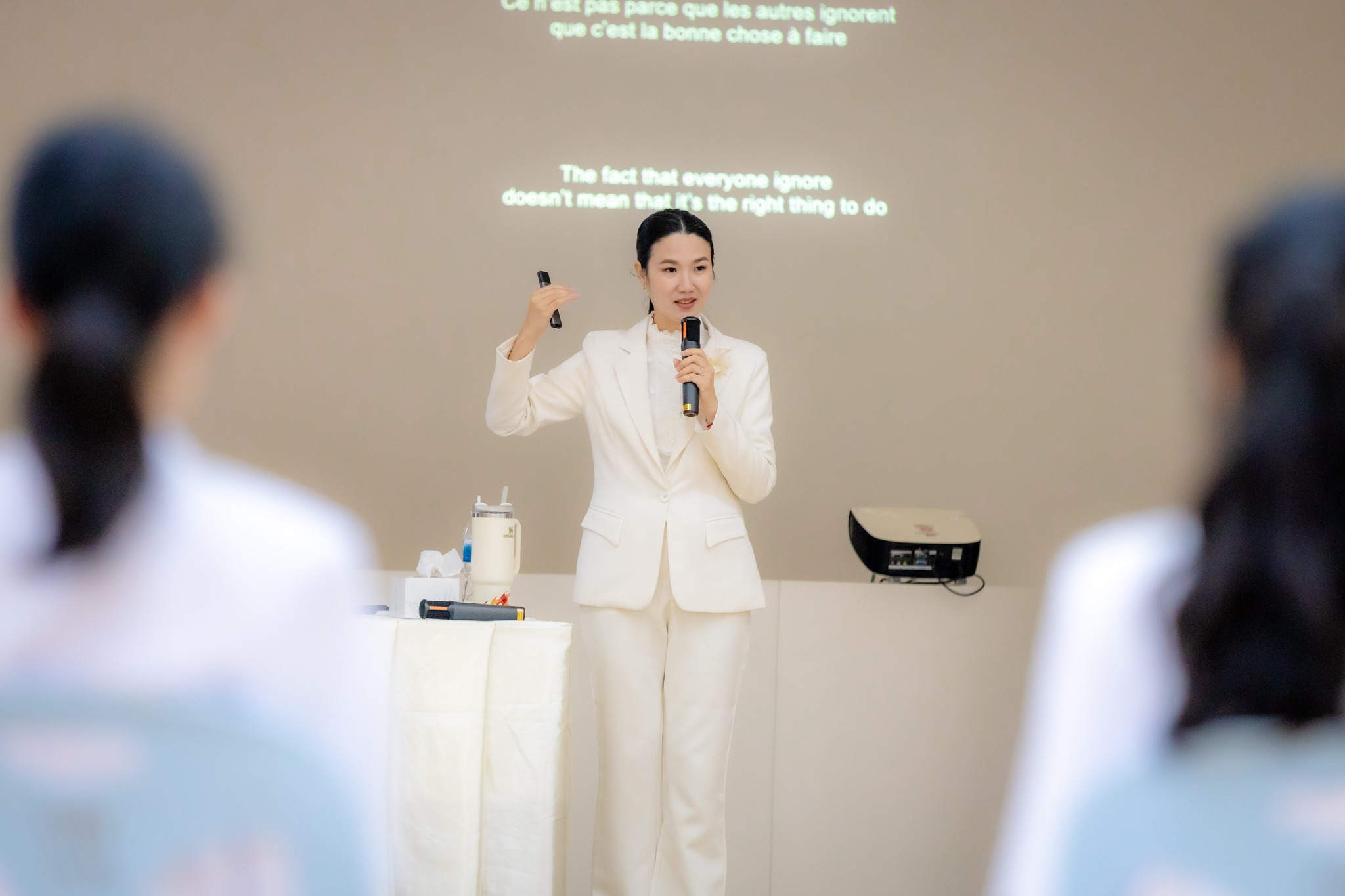 โดยได้รับเกียรติจากวิทยากร ครูทิพย์ (พรทิพย์ โชคชัยเจริญสิน) จากสถาบัน Minding Image Thailand ซึ่งได้ฝึกและปรับ posture การนั่ง การยืน การเดิน และการไหว้ ให้สง่างาม สมเป็นธรรมทายาทหญิง และสามารถพกพาความมั่นใจไปได้ในทุกที่ เช่น การ shake hand แบบสากล การพบปะผู้ใหญ่ รวมถึงการยืนถ่ายภาพหมู่ให้ดูสวยงามอย่างเหมาะสม ตลอดจนการเดินด้วยท่าทางที่สง่างาม เป็นต้น