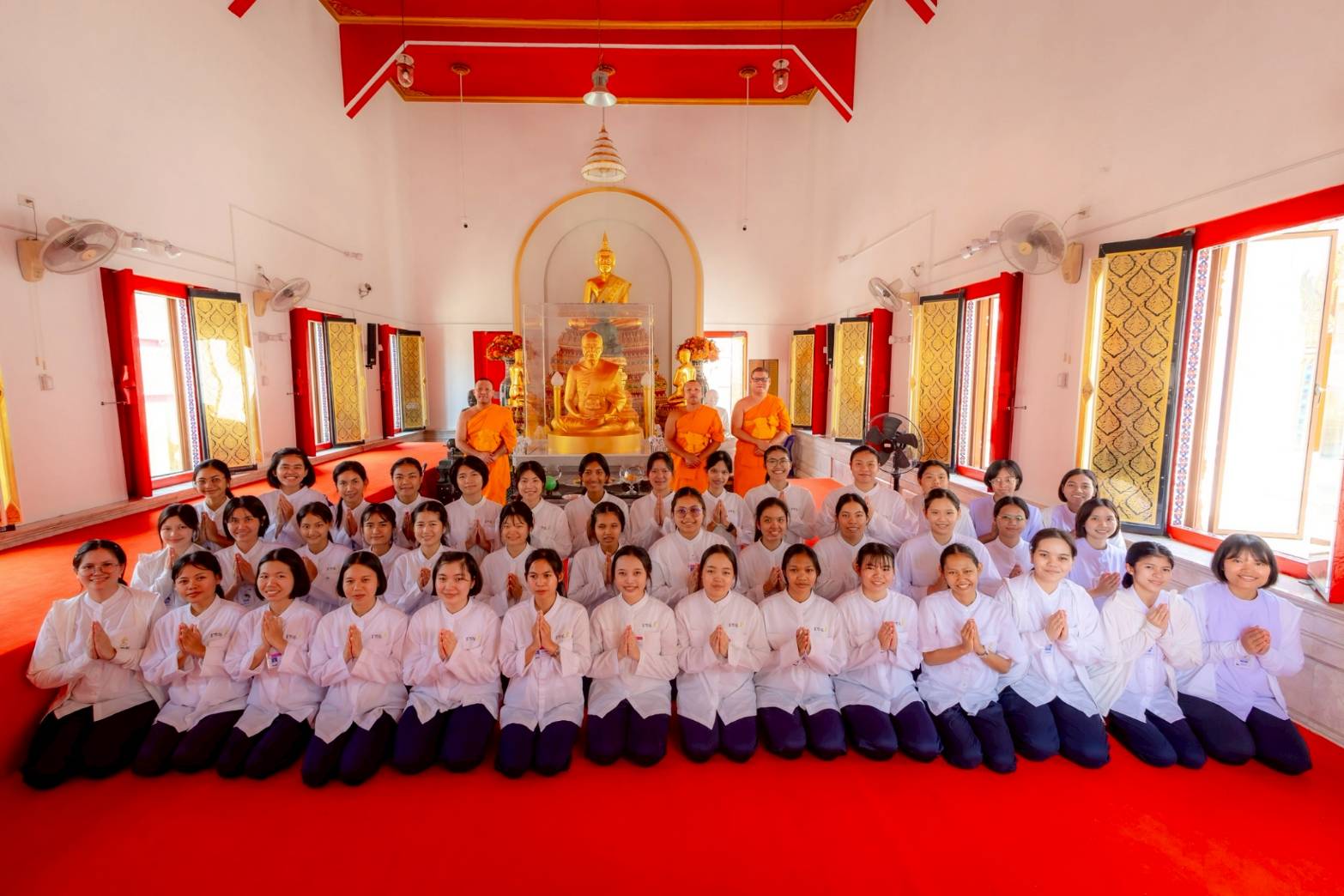 กิจกรรมเริ่มต้นด้วยการเดินทางจากวัดพระธรรมกาย ไปยังอนุสรณ์สถานมหาวิหารพระมงคลเทพมุนี (โลตัสแลนด์) อำเภอสองพี่น้อง จังหวัดสุพรรณบุรี ซึ่งเป็นสถานที่เกิดด้วยรูปกายเนื้อของพระมงคลเทพมุนี โดยธรรมทายาทหญิงทุกคนได้เข้าไปกราบสักการะรูปหล่อทองคำของหลวงปู่ ณ วิหารหลวงปู่ทองคำ พร้อมทั้งร่วมกันสวดสรรเสริญหลวงปู่ และฟังประวัติหลวงปู่จากคุณน้าองุ่น สุขเจริญ