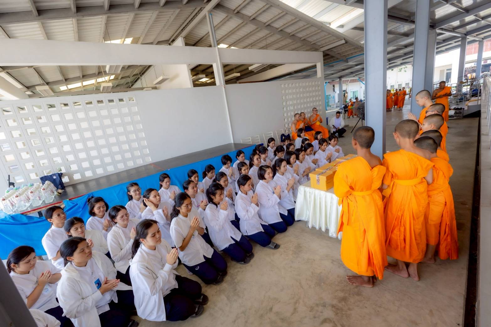 จากนั้นได้เดินทางไปยังศูนย์ปฏิบัติธรรมพระมงคลเทพมุนี เพื่อถวายไอศกรีมแด่พระภิกษุและสามเณรที่บวชในโครงการบวชสามเณรภาคฤดูร้อน ประจำปี 2569 ณ จังหวัดสุพรรณบุรี กว่า 70 รูป ด้วยความปลื้มใจ