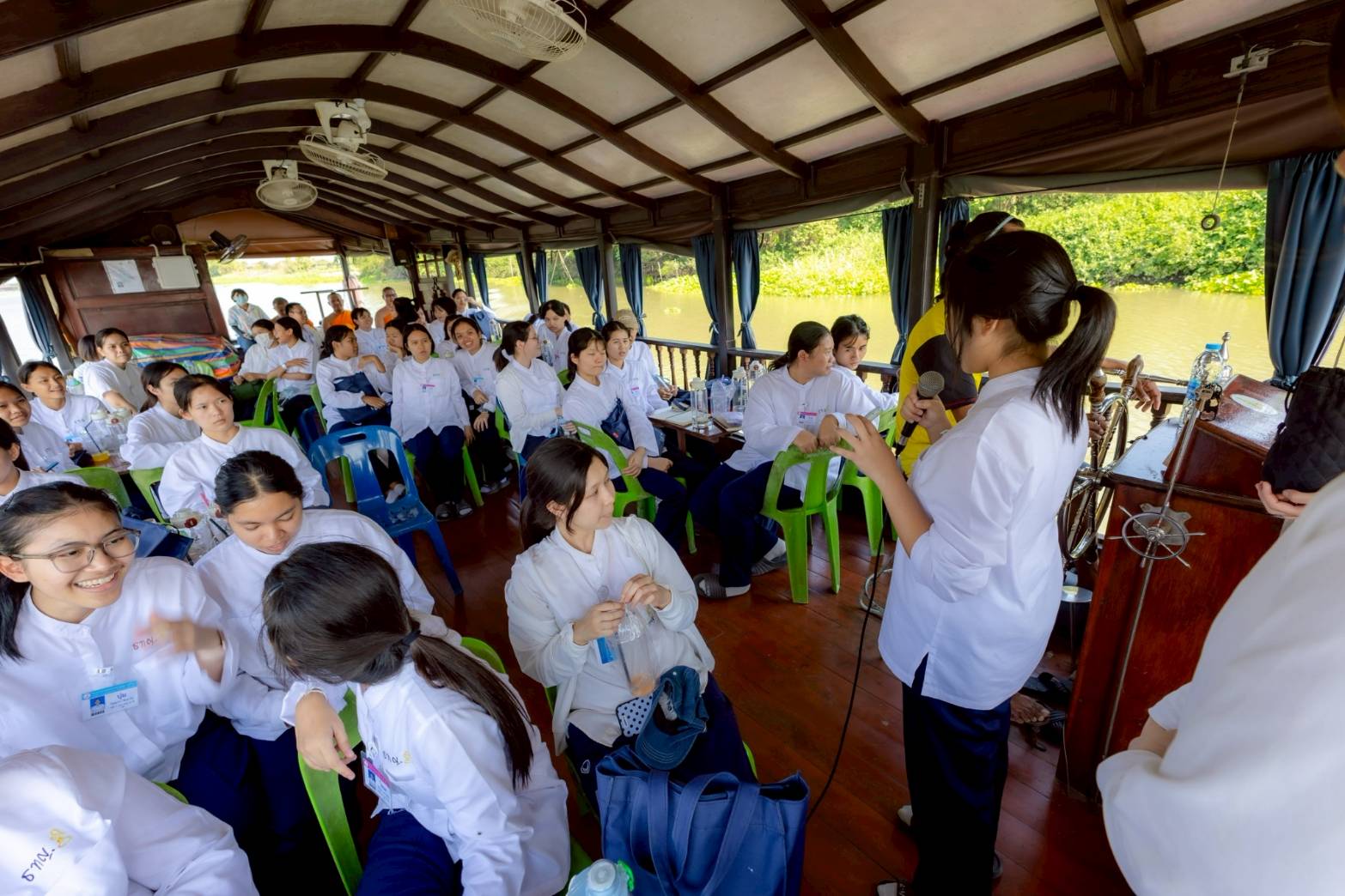ต่อมาเดินทางไปยังตลาดน้ำลำพญา และล่องเรือไปวัดบางปลา จังหวัดนครปฐม ซึ่งเป็นสถานที่เผยแผ่วิชชาธรรมกายของพระมงคลเทพมุนี พร้อมฟังธรรมะจากพระอาจารย์ ทำให้เห็นถึงแนวทางการปฏิบัติของหลวงปู่ผู้ค้นพบวิชชาธรรมกาย
