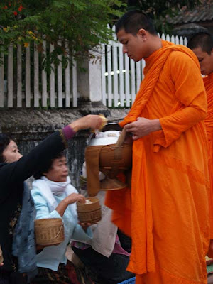 ตลอดเวลาที่ท่านเดินผ่าน ไม่มีใครสนทนาพูดคุยกันเลย ทุกคนไม่ว่าจะใส่บาตรแล้วหรือกำลังรอใส่บาตรต่างก็ยืนนิ่งทื่อๆ ยืนอยู่ตรงไหนก็อยู่ตรงนั้น ไม่ขยับเขยื้อนเคลื่อนย้ายหรือเดินไปเดินมาตามประสาคนทั่วไป ไม่มีการทักทายหรือพูดคุยซึ่งกันและกัน ซึ่งออกจะผิดวิสัยธรรมชาติของสังคมคนหมู่มากทำให้บรรยากาศดูสงัดวังเวงบอกไม่ถูก