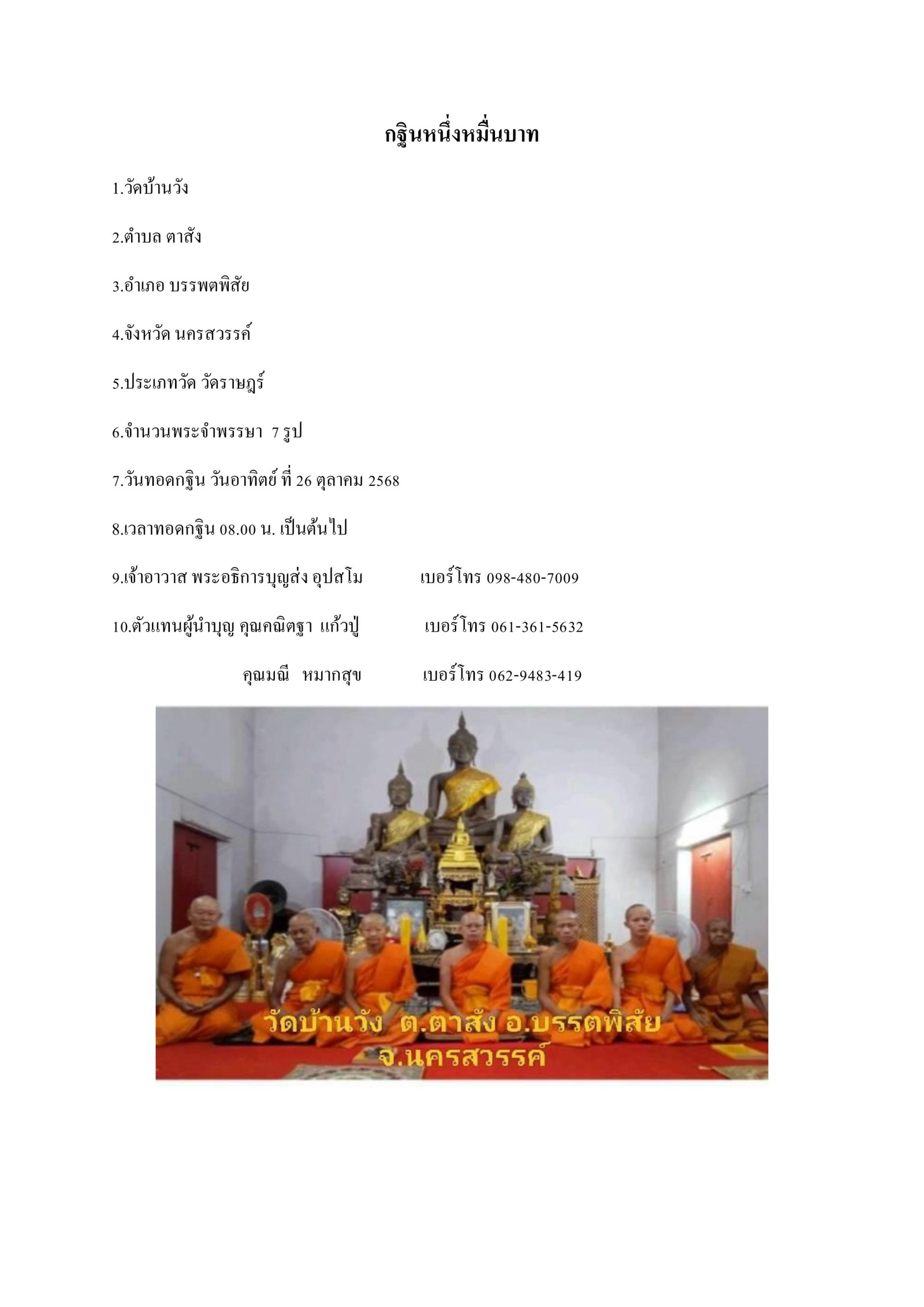 ทอดกฐิน 26 ต.ค. 68